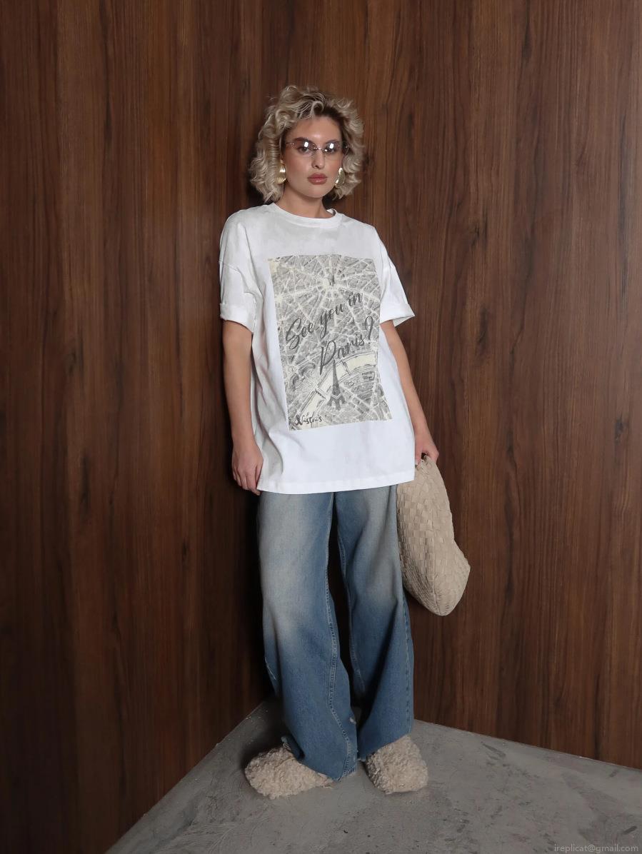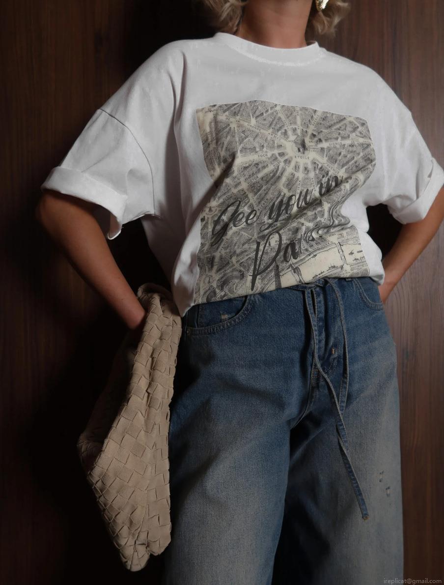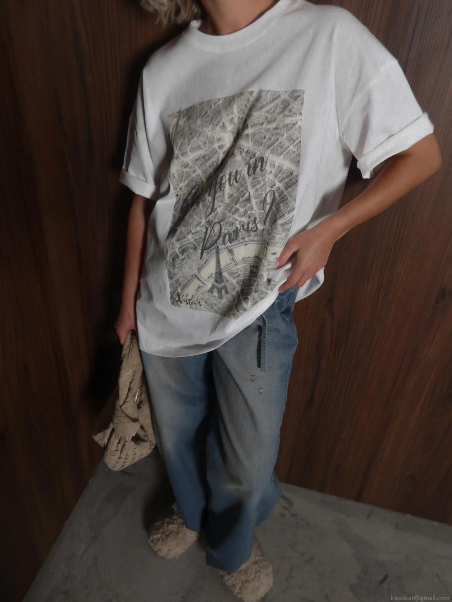 Women's Casual Cotton White T-Shirt See You In Paris Map Print Loose Fit Short Sleeve Round Neck Summer Streetwear Top
