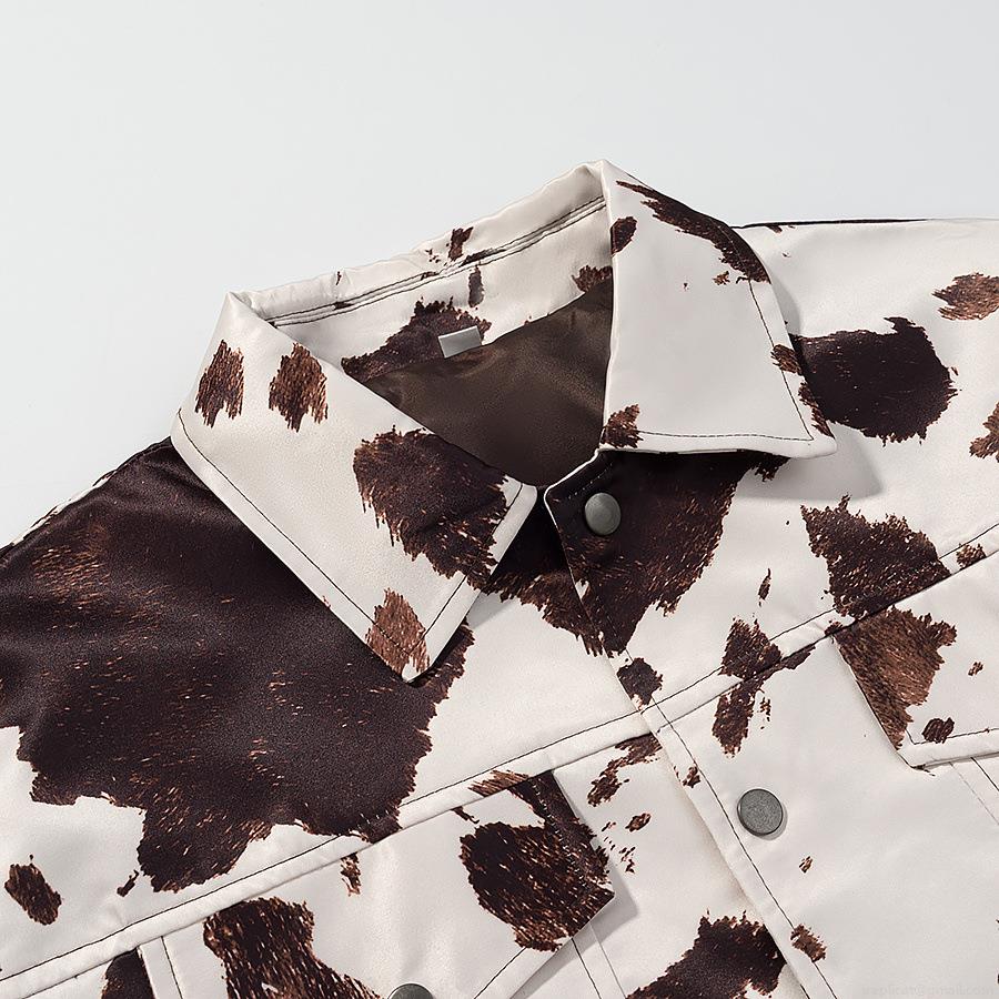 Splice, Pocket, Color Blocking, Cow Print, Printing