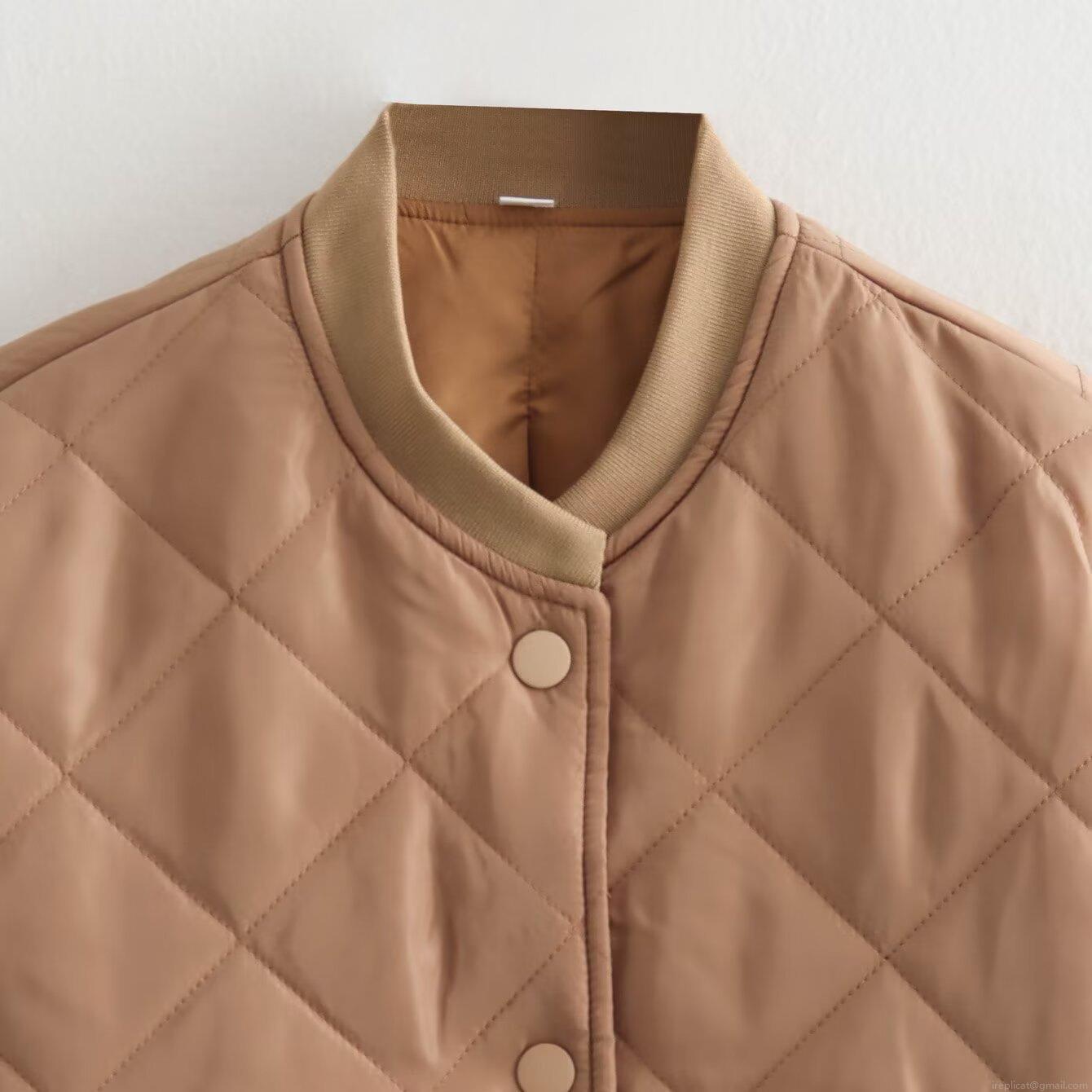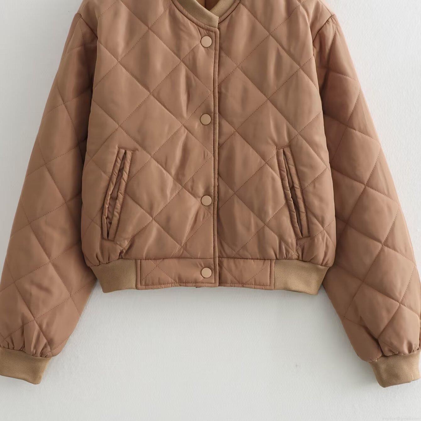 Solid Color, Diamond Pattern, Diamond Quilting, Pocket Decoration, Stand-up Collar Design