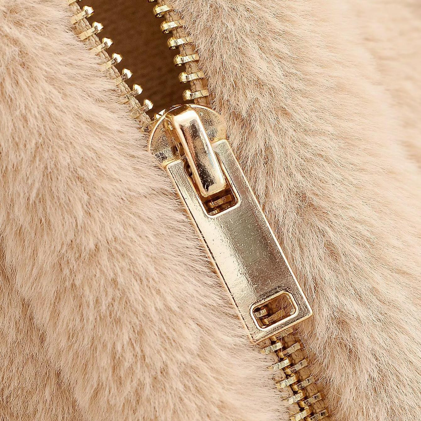 Solid Color, Metal Zipper, Plush Texture, Elastic Hem
