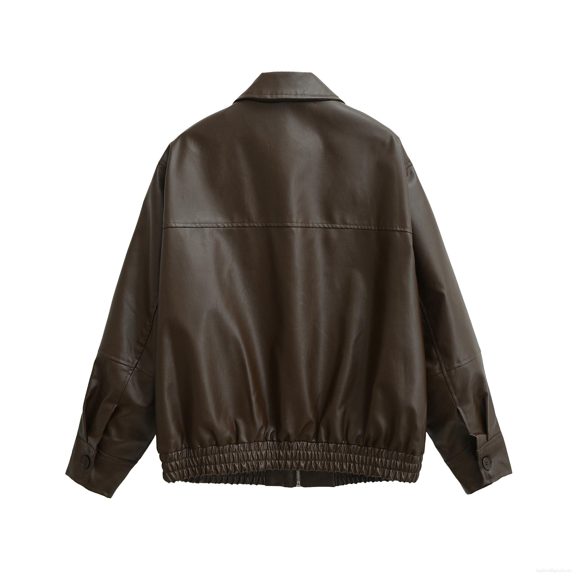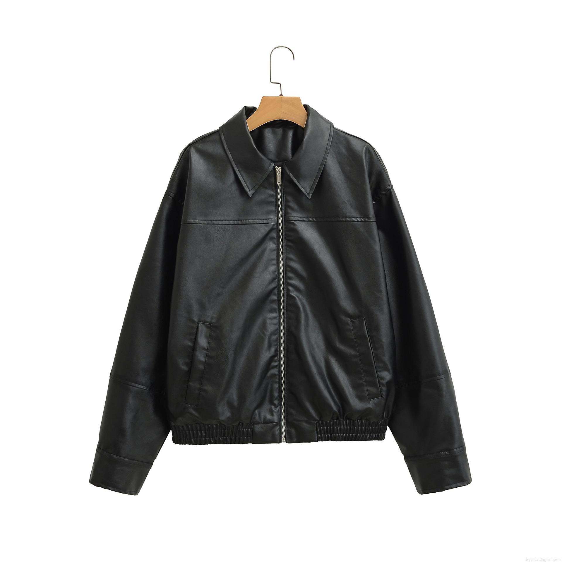 Women's Casual Faux Leather Bomber Jacket Long Sleeve Zip Up Loose Fit Streetwear PU Leather Coat With Polyester Lining For Daily Winter Autumn Fashion