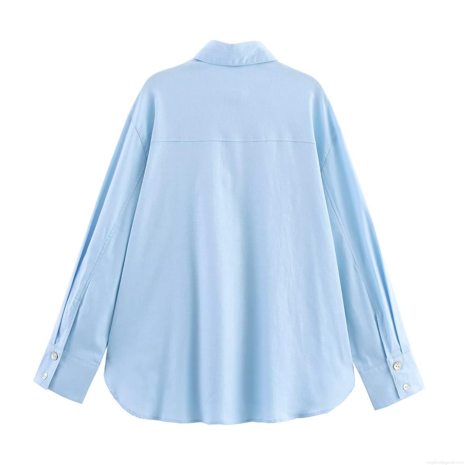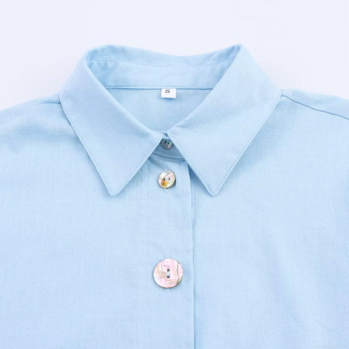 Women's Casual Faux Linen Long Sleeve Shirt Button Down Loose Solid Color Blouse With Lapel Collar Simple All-Match Woven Top For Daily Office Streetwear
