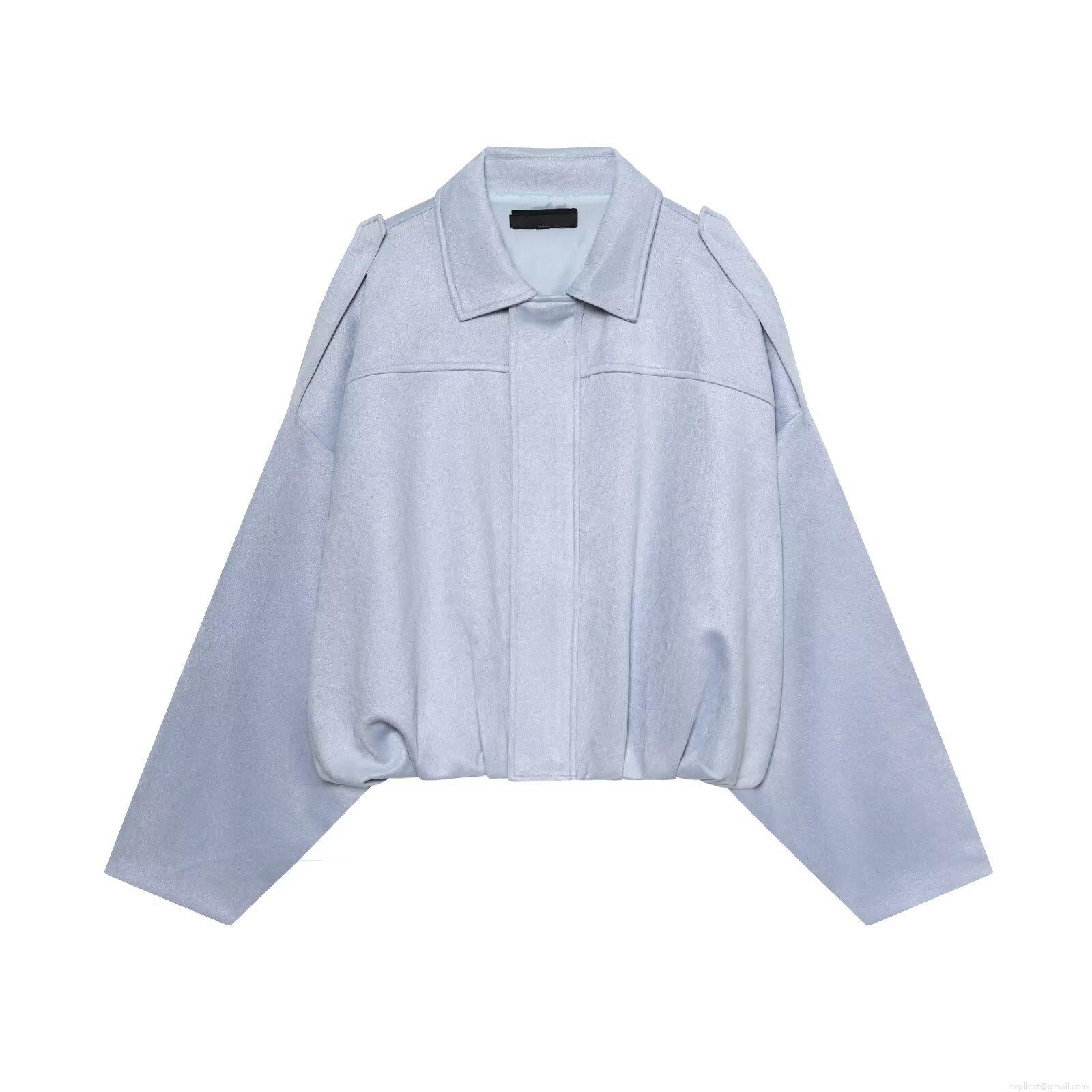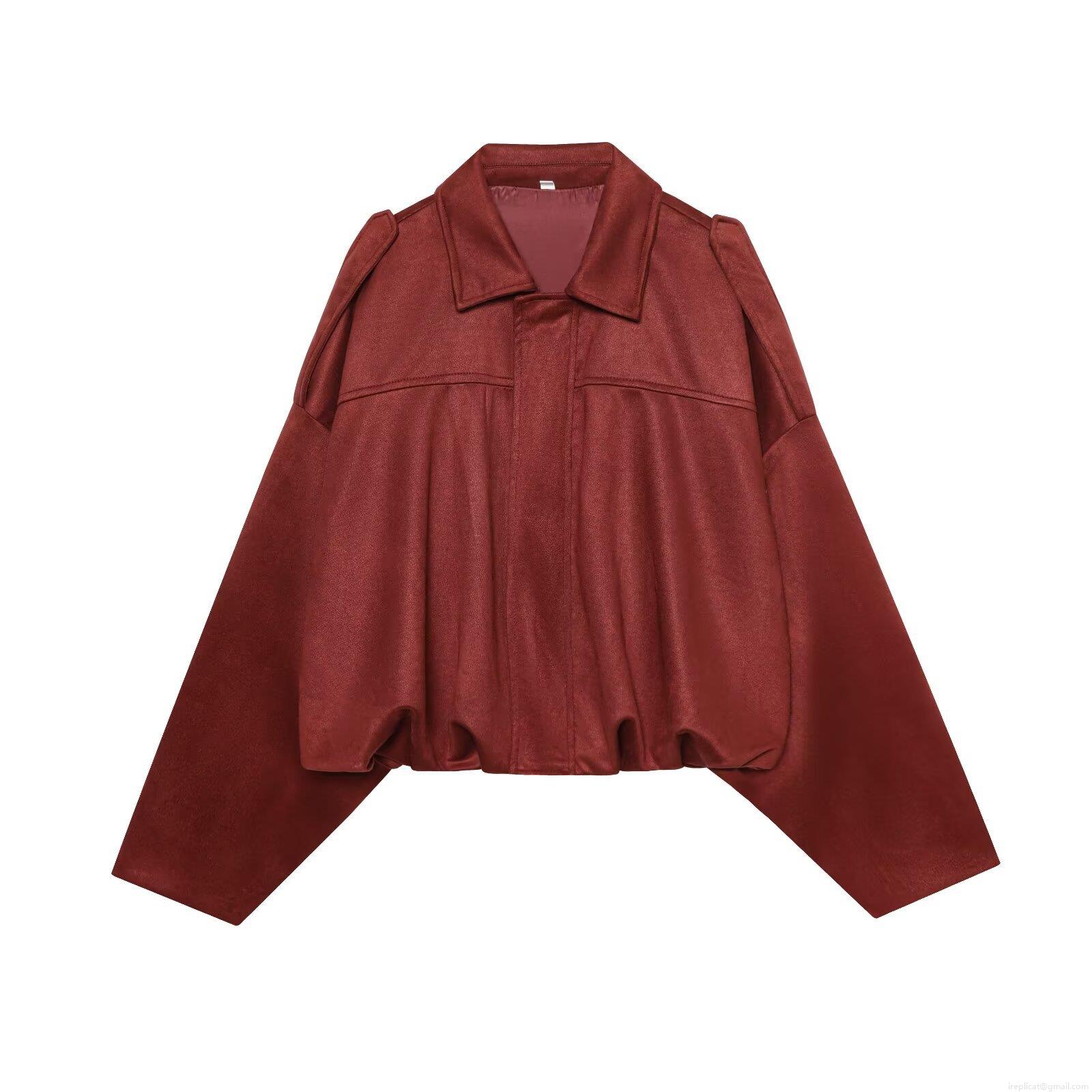 Women's Casual Faux Suede Cropped Jacket Lapel Zip Up Long Sleeve Outerwear Drop Shoulder Solid Color Loose Fit Fashion Coat For Fall Winter
