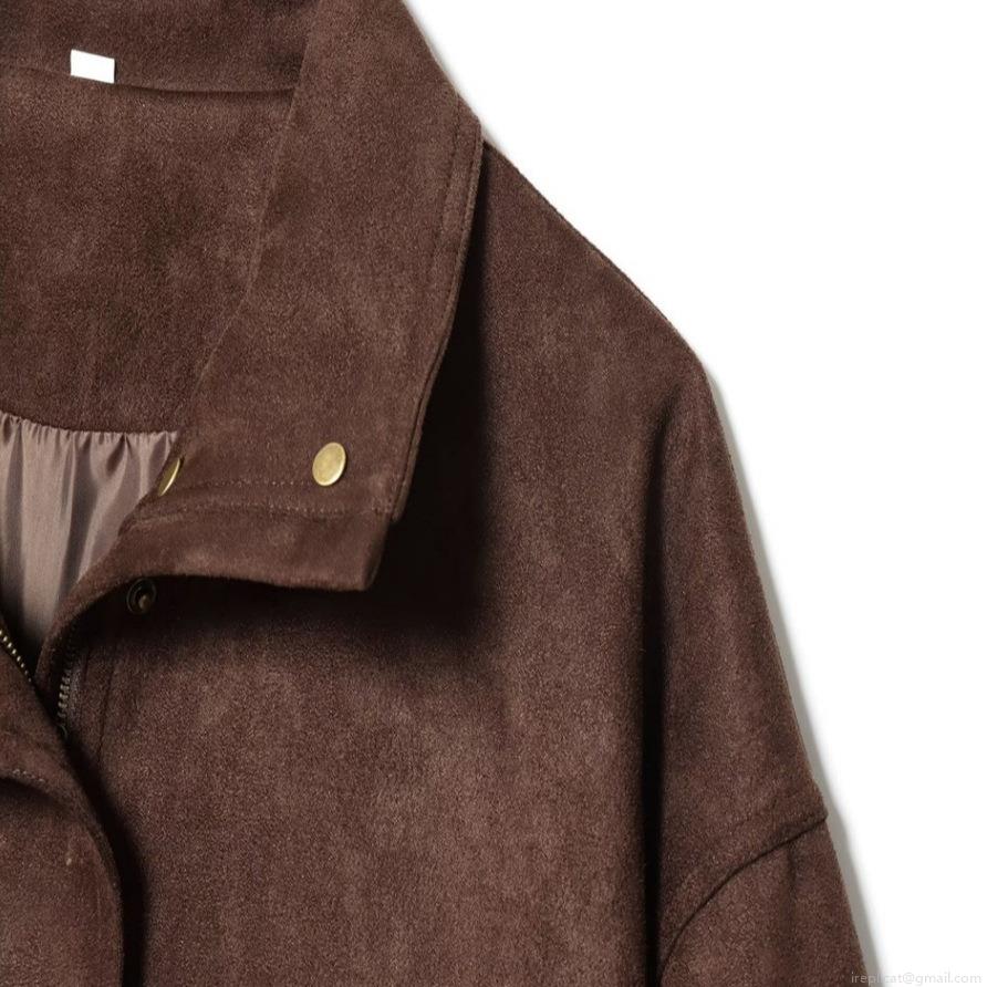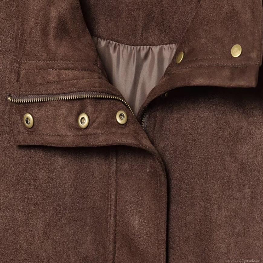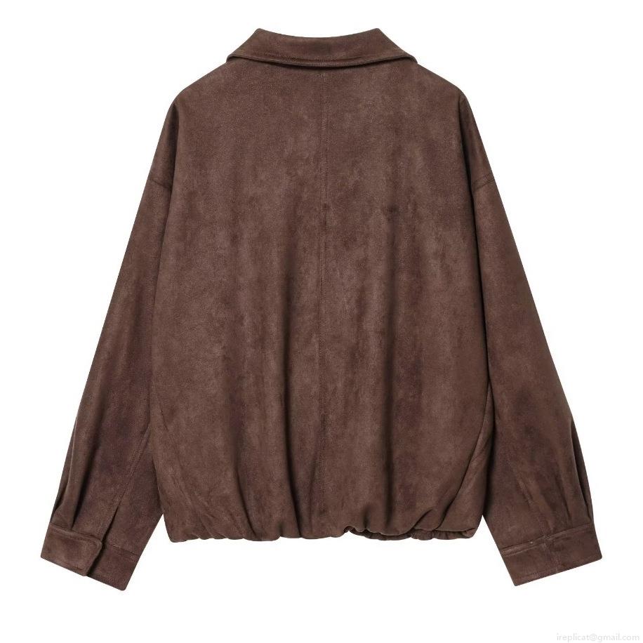 Women's Casual Faux Suede Jacket Retro Turn-down Collar Loose Fit Zipper Coat With Pockets Solid Color Long Sleeve Outerwear For Women