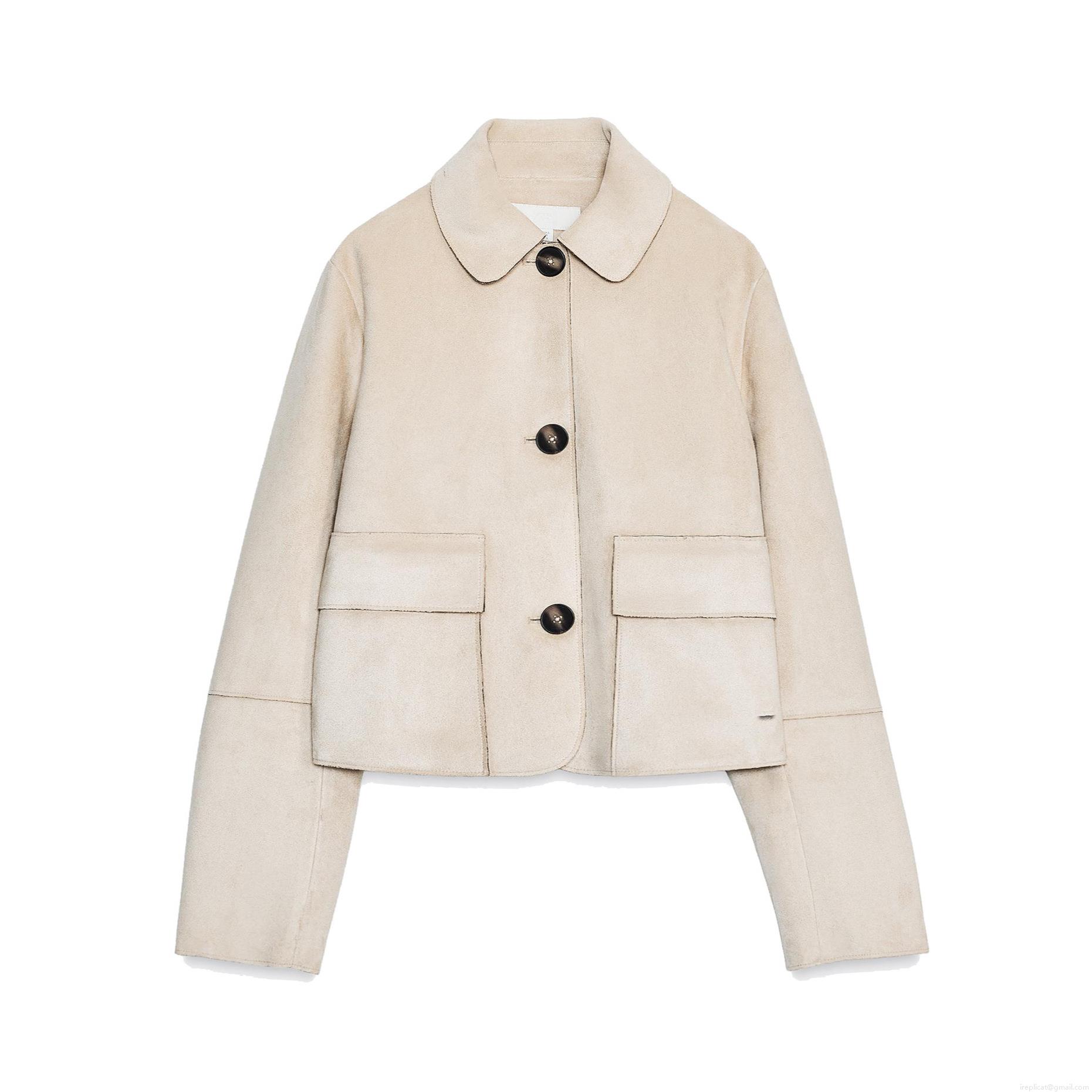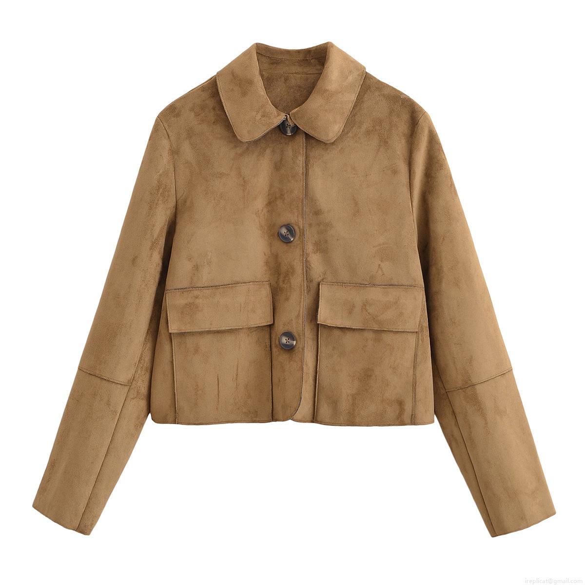 Women's Casual Faux Suede Short Jacket Lapel Collar Single Breasted Coat With Large Pockets Utility Workwear Style Outerwear For Ladies Spring Autumn