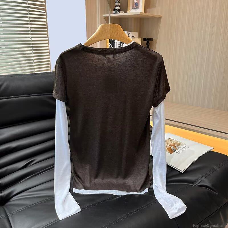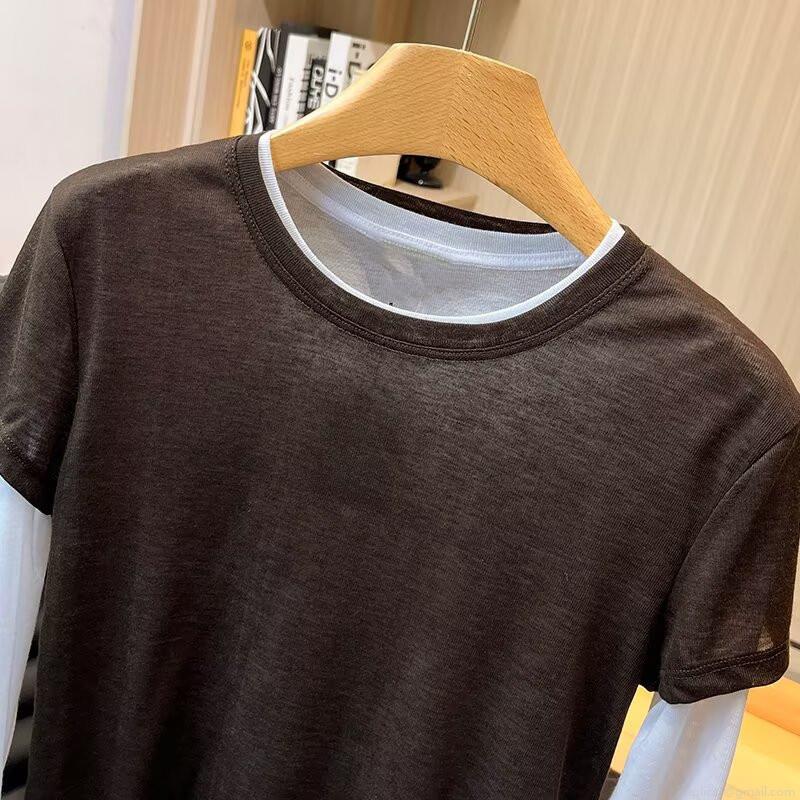 Women's Casual Faux-Two-Piece Long Sleeve T-Shirt 95% Cotton Spandex Patchwork Contrast Color Round Neck Top Slim Fit Autumn Casual Minimalist Tee For Women
