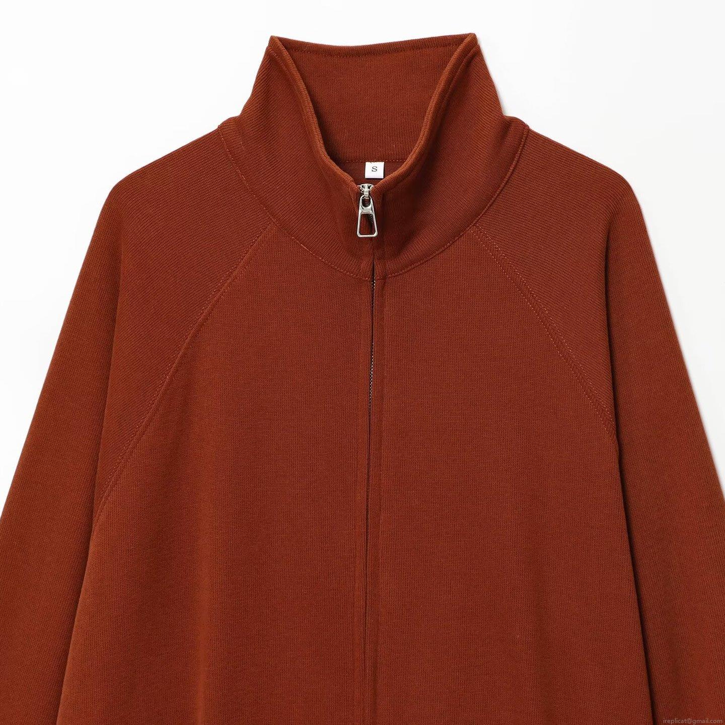 Women's Casual Full Zip-up Sweatshirt Jacket Solid Color Stand Collar Knit Outerwear Soft Loose Fit Autumn Tops For Daily Office Wear