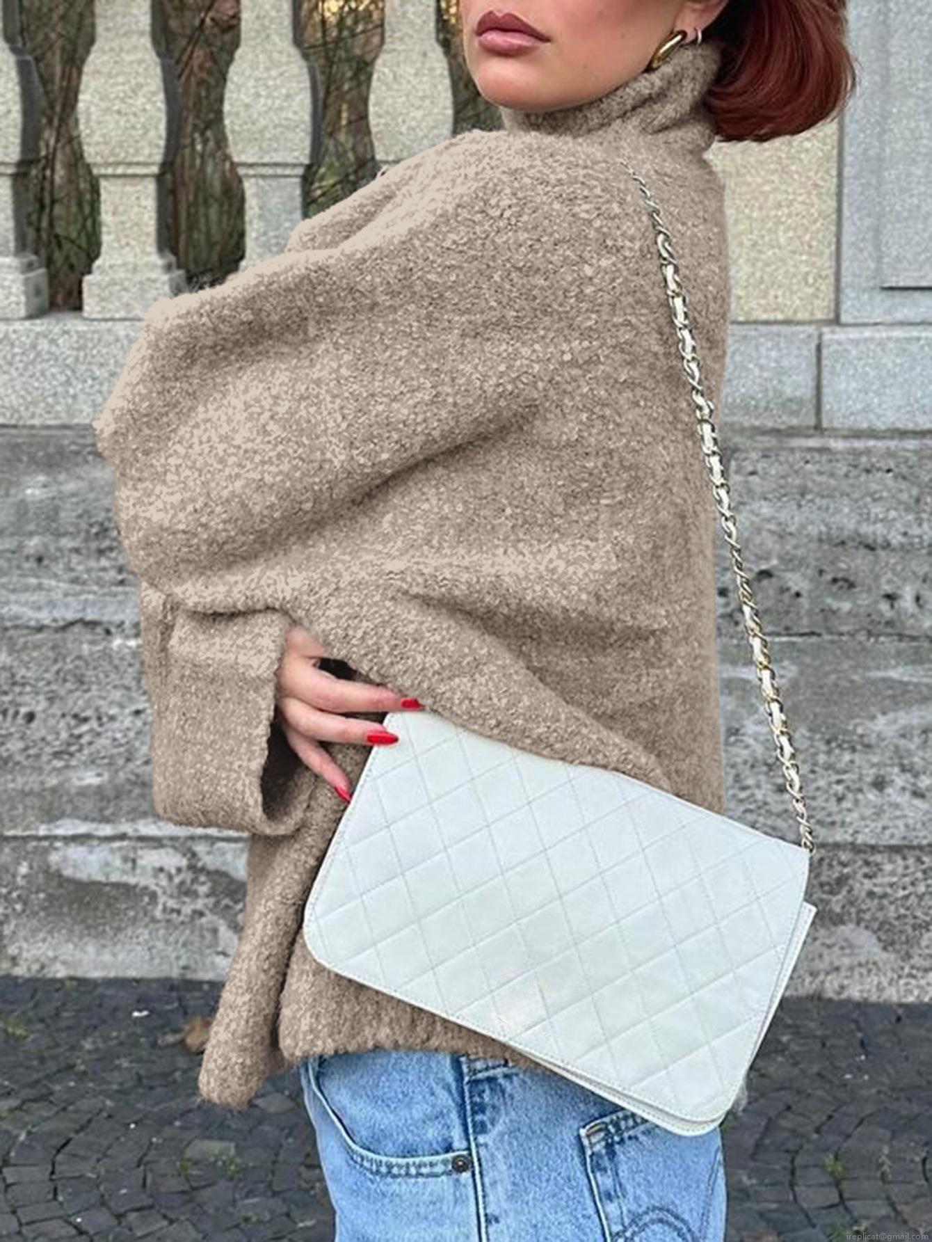 Women's Casual High Neck Teddy Fleece Sweater Loose Solid Color Long Sleeve Knit Pullover Top Autumn Winter Warm Leisure Wear Women Fashion Jumper