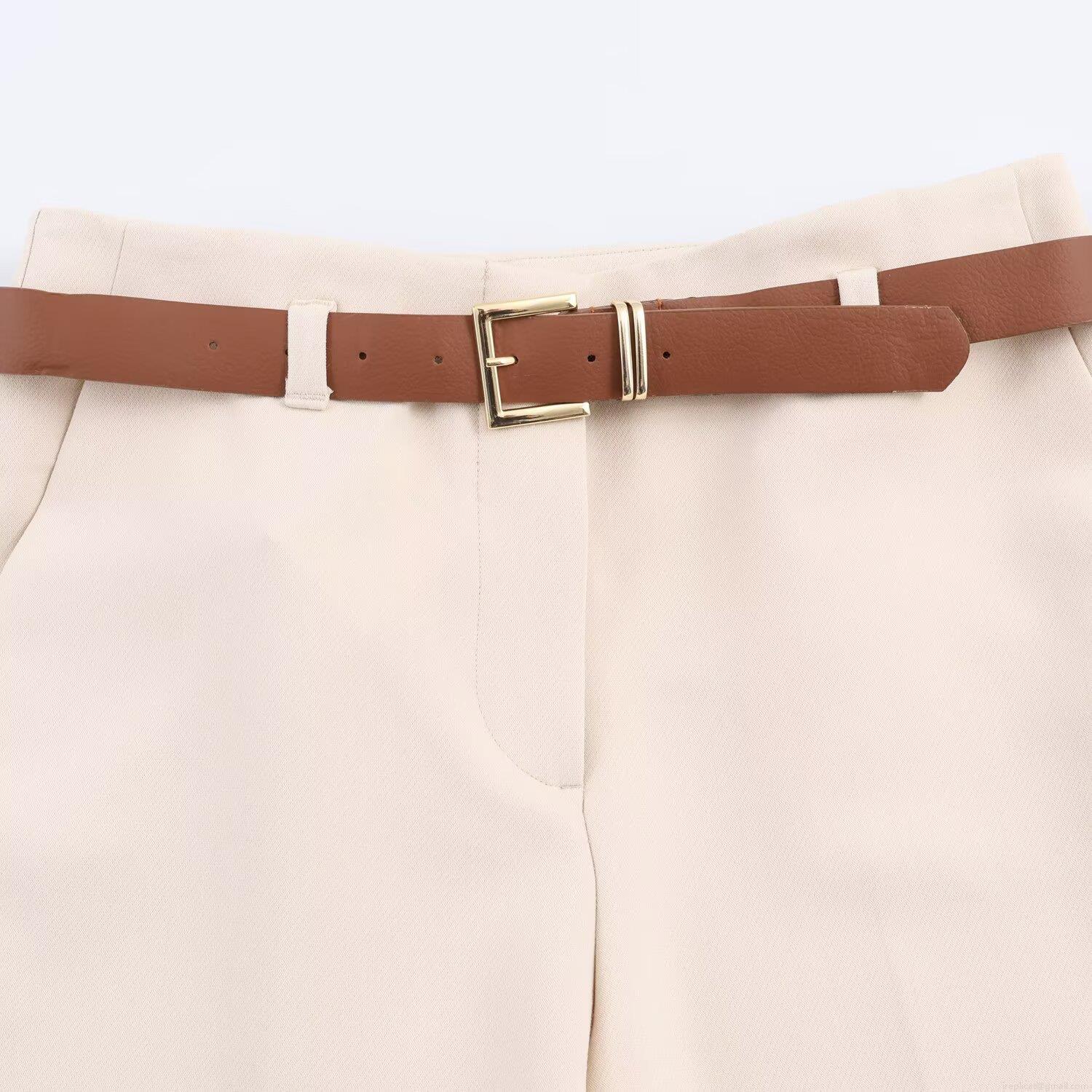 Rolled Hem, With Belt, High-waisted Wide-leg Pants