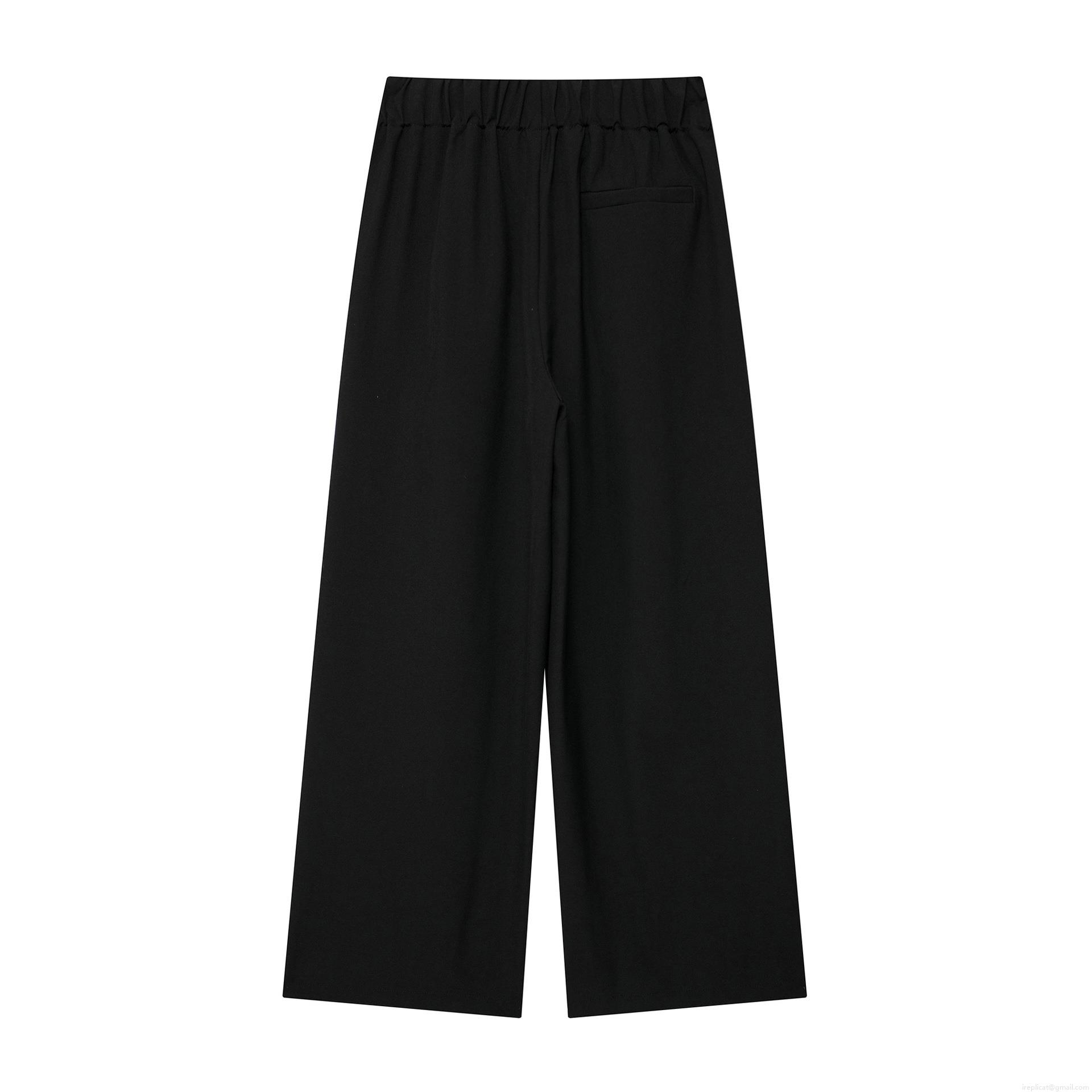 Women's Casual High Waist Wide Leg Trousers Solid Color Polyester Drawstring Elastic Waist Straight Pants For Summer Streetwear Daily Wear