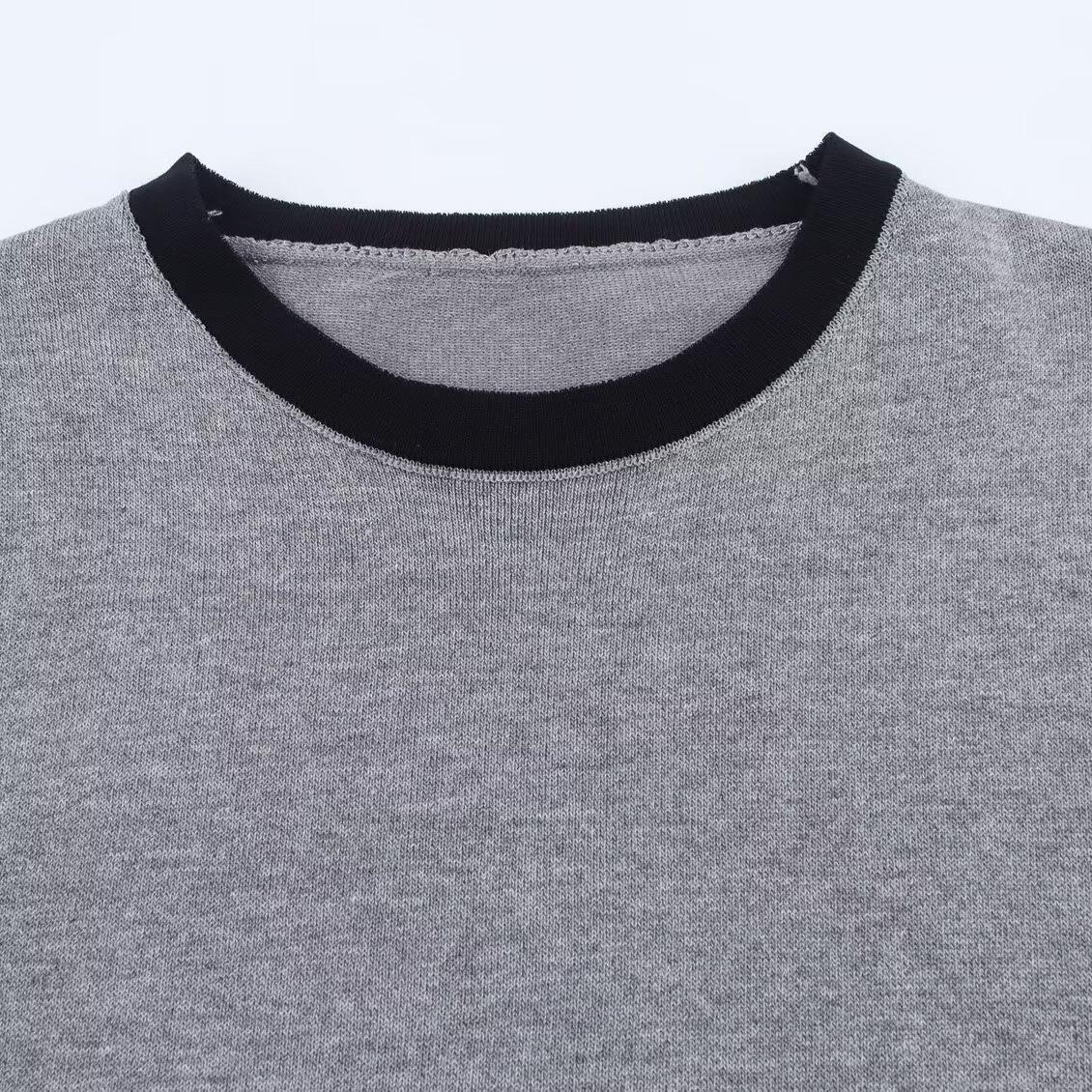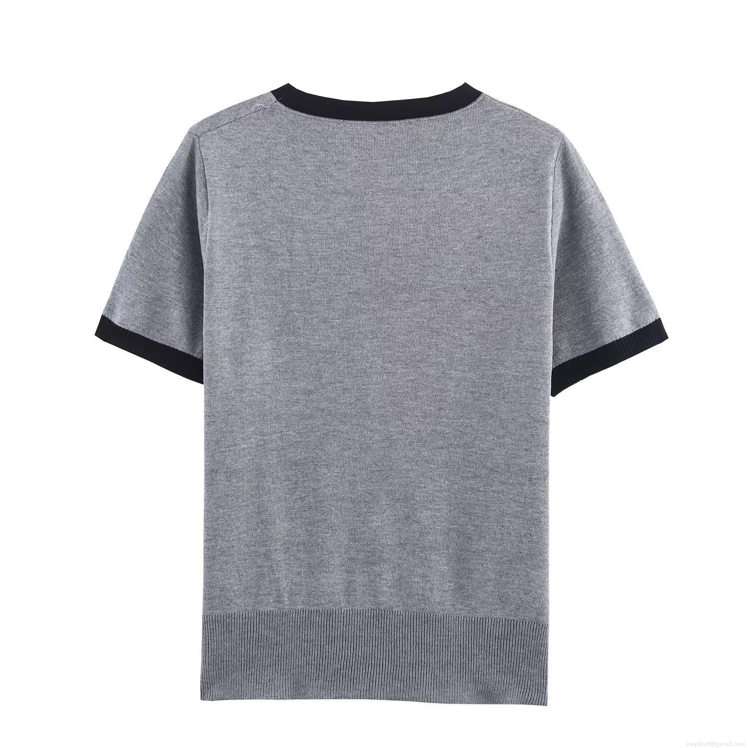 Women's Casual Knit T-Shirt Contrast Color Trim Round Neck Short Sleeve Pullover Slim Fit Striped Ribbed Summer Knitwear Top For Women