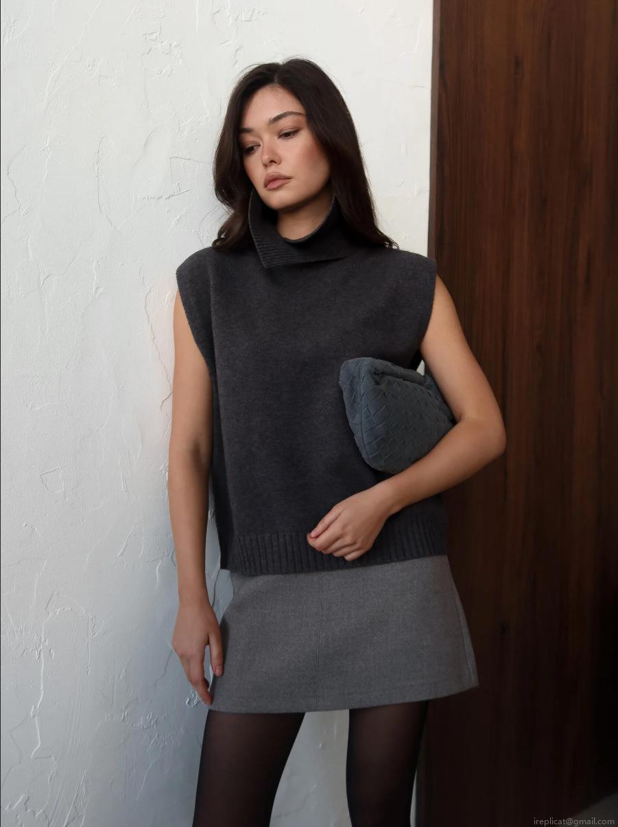 Solid Color, Sleeveless, Knitted Texture, High Neck Design