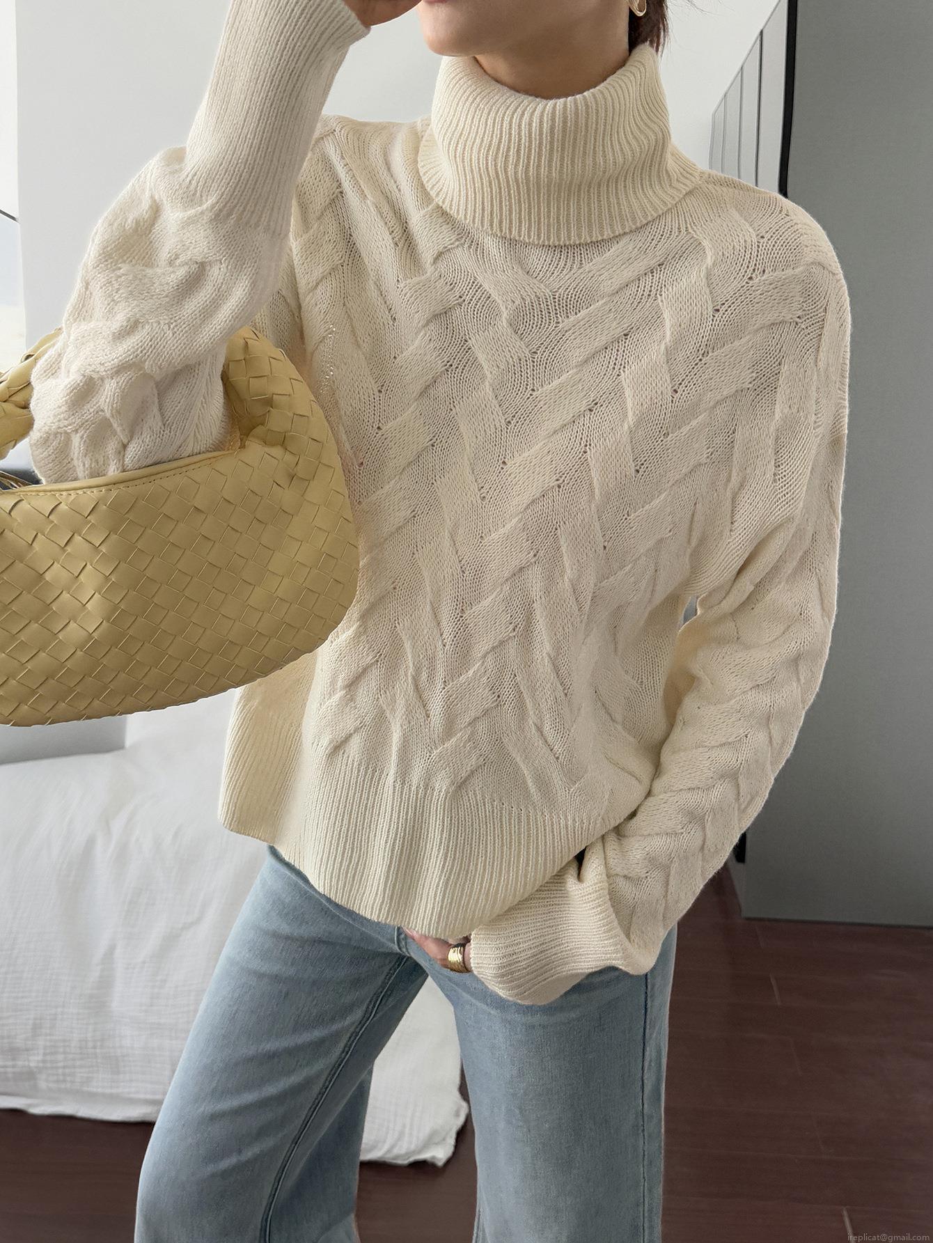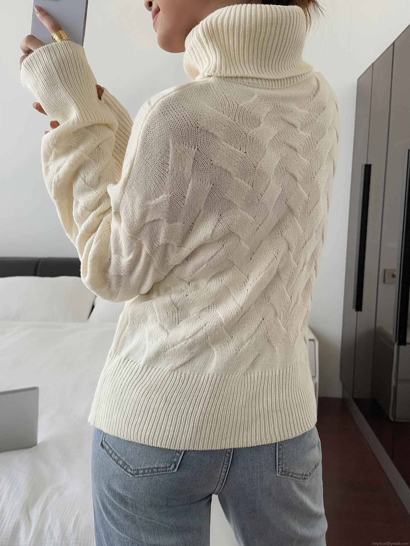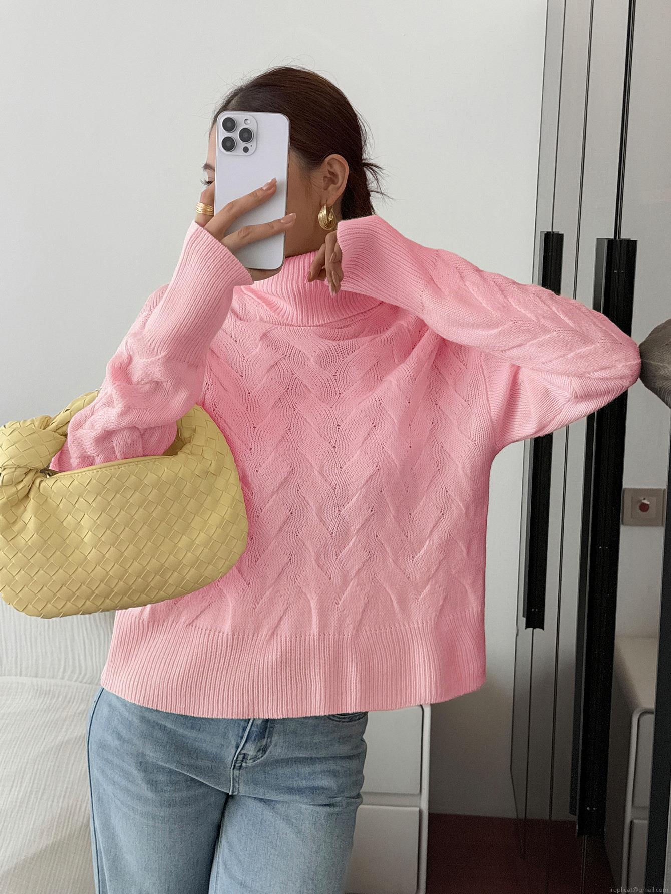 Women's Casual Knitted Sweater 100% Acrylic High Neck Long Sleeve Loose Pullover Jumper Solid Color Braided Texture Warm Winter Tops