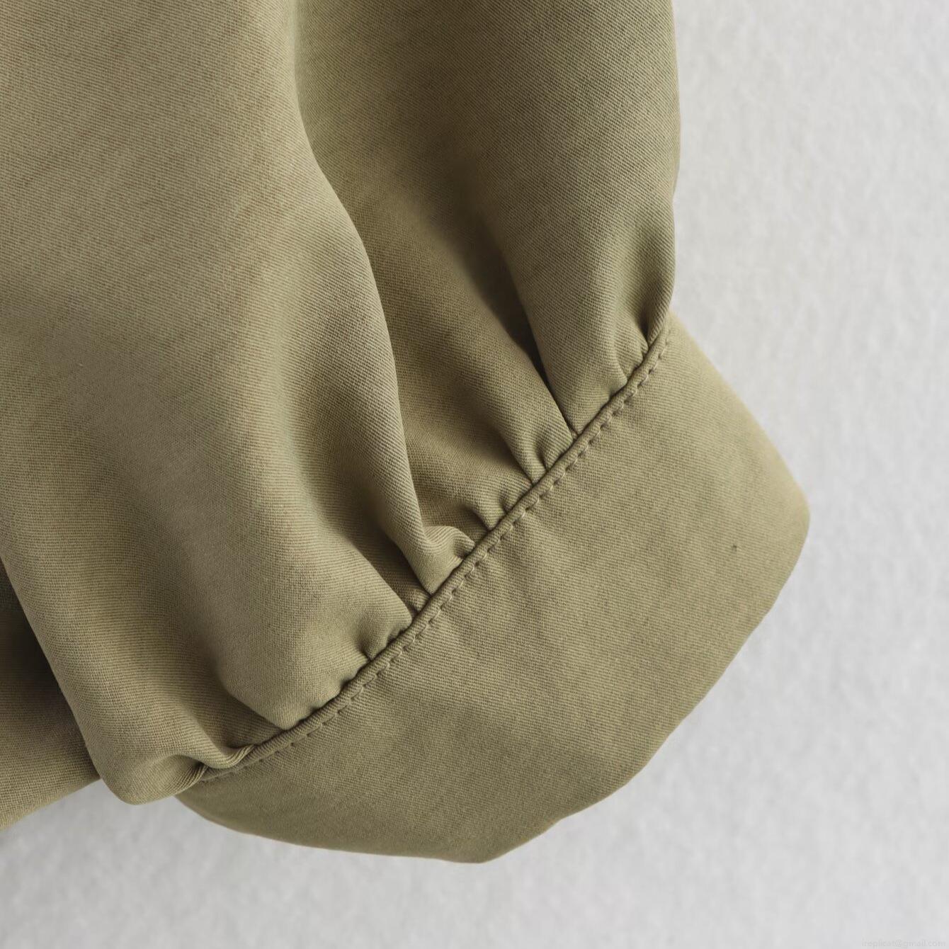 Women's Casual Lightweight Bomber Jacket 100% Polyester Solid Color Loose Ruched Lantern Sleeve Zip Up Stand Collar Outerwear Coat For Daily Wear Autumn Spring