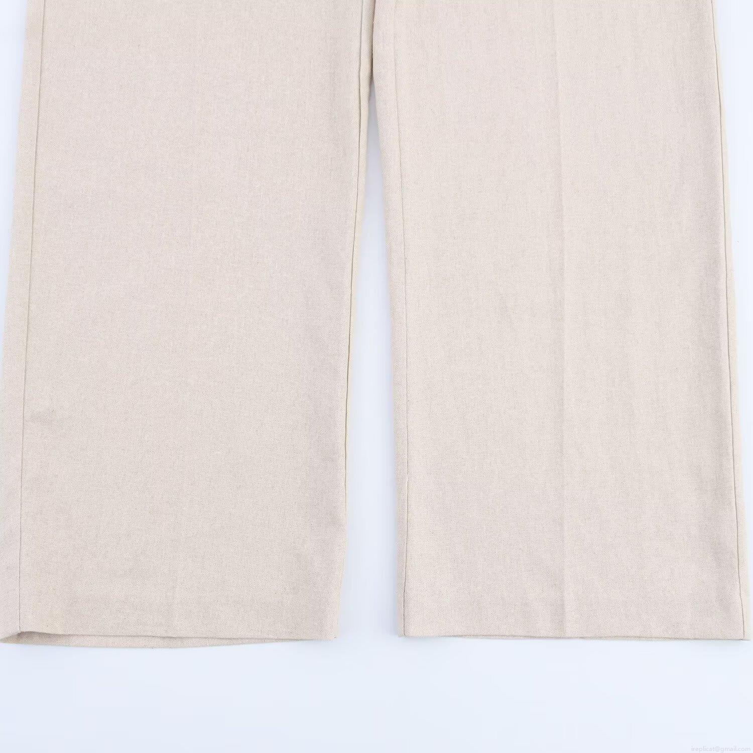 Women's High Waist Wide Leg Pants Polyester Blend Linen Texture Tie...