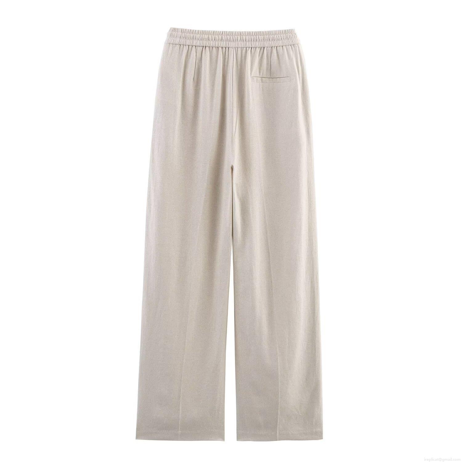 Women's Casual Linen Blend Wide Leg Pants Elastic High Waist Drawstring Straight Trousers Minimalist Breathable Summer Loose Daily Bottoms