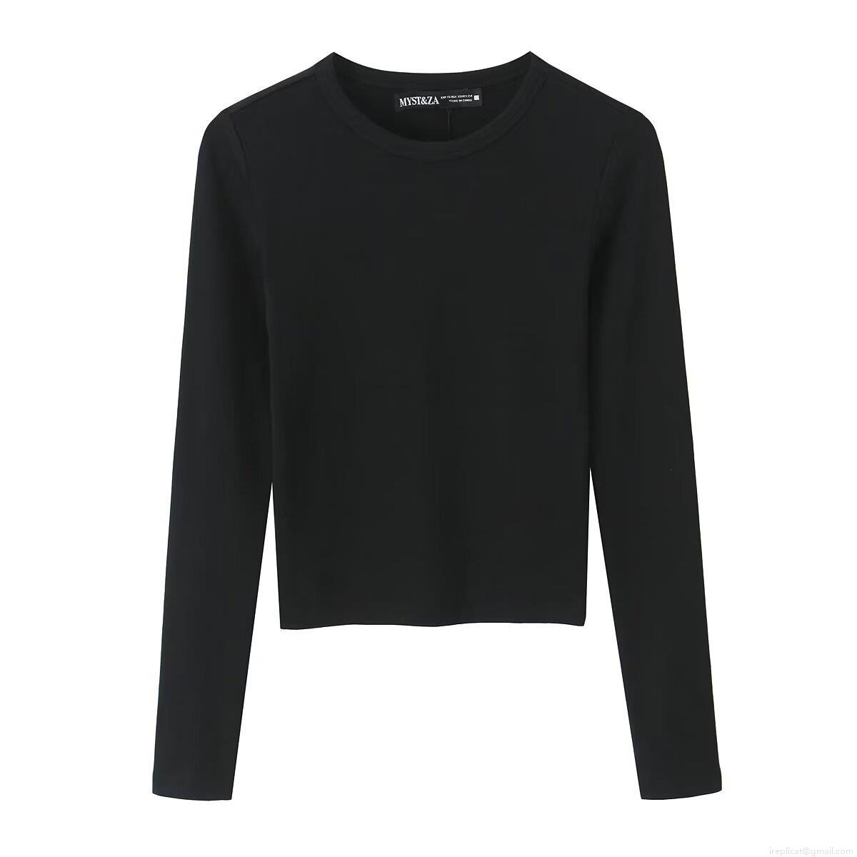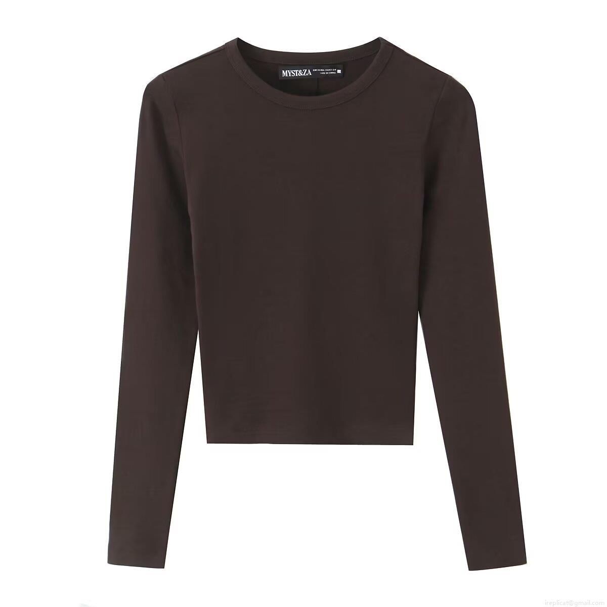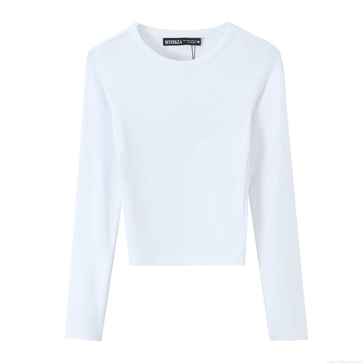 Women's Casual Long Sleeve Crop T-Shirt Slim Fit Cotton Blend Knit Solid Color Crew Neck Ribbed Basic Tee Streetwear Daily Top