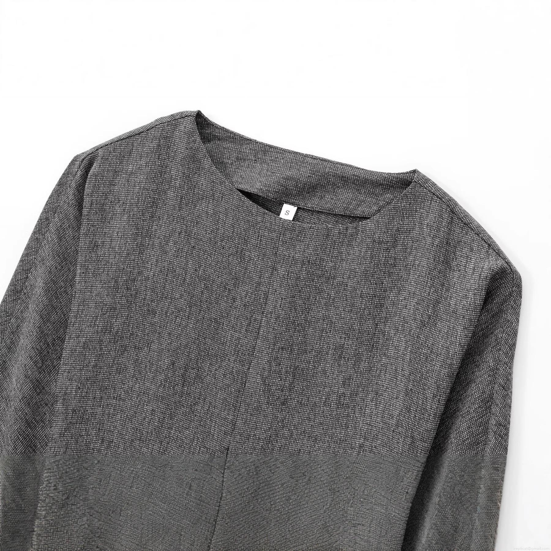 Women's Casual Long Sleeve T-Shirt Round Neck Pleated Decoration Grey Knit Top Lightweight Polyester Blend Fabric Breathable Comfy Tee for Daily Autumn Winter