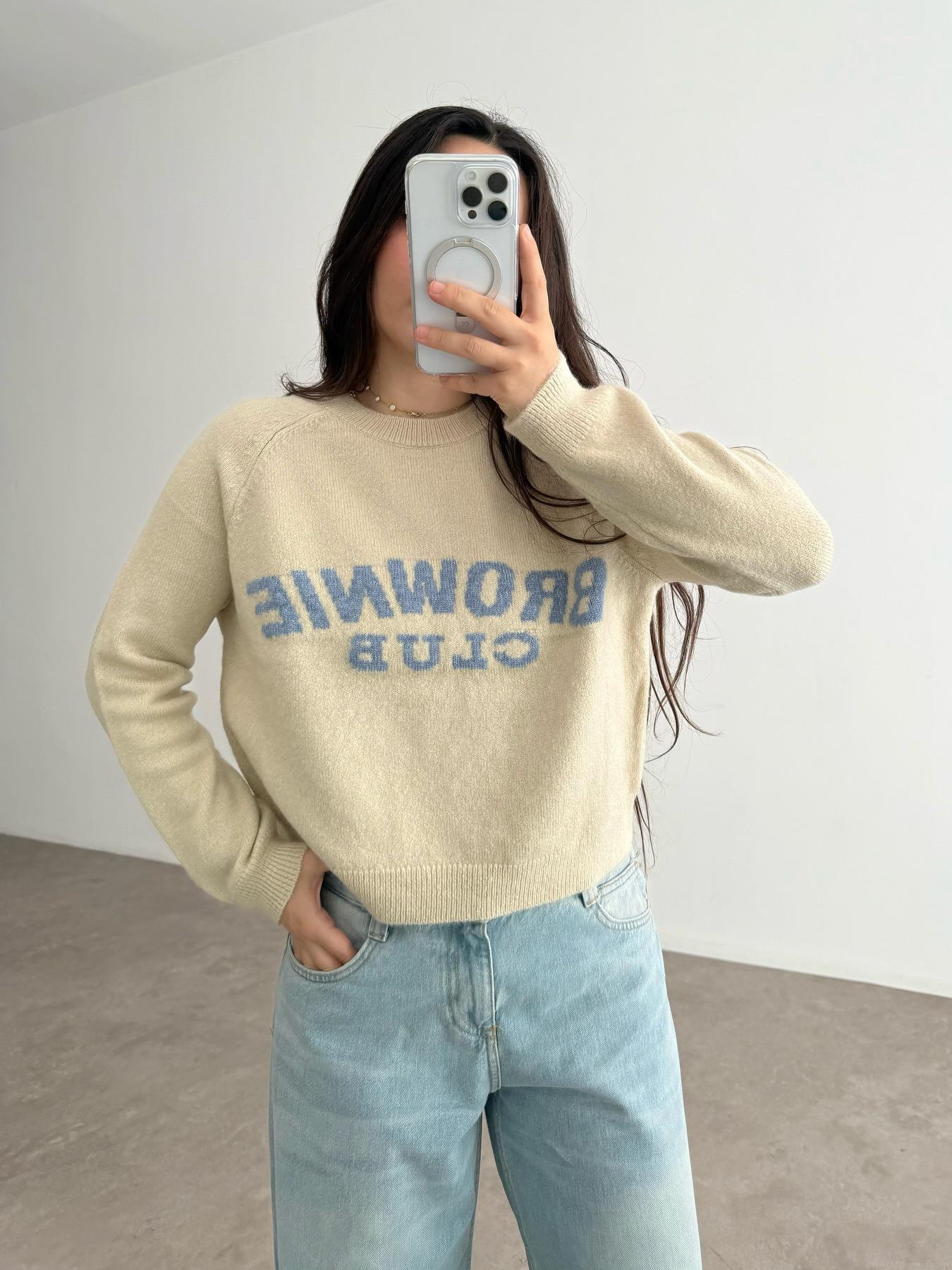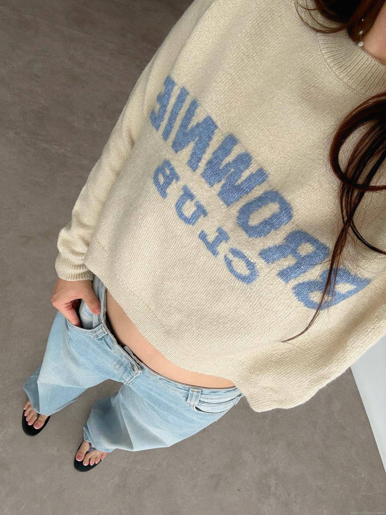 Women's Casual Loose Crewneck Pullover Sweater Letter Towel Embroidery Cotton Polyester Blend Long Sleeve Knitwear Autumn Winter Streetwear Top