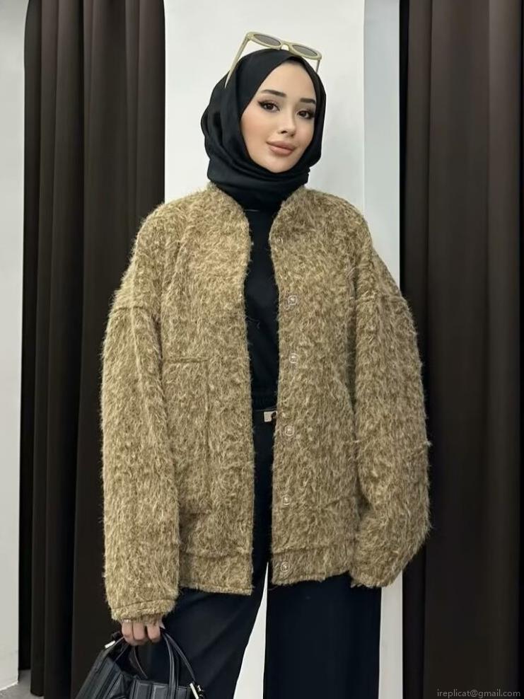 Women's Casual Loose Faux Fur Plush Jacket Round Neck Single Breasted Long Sleeve Mid-Length Warm Outerwear Coat For Autumn Winter