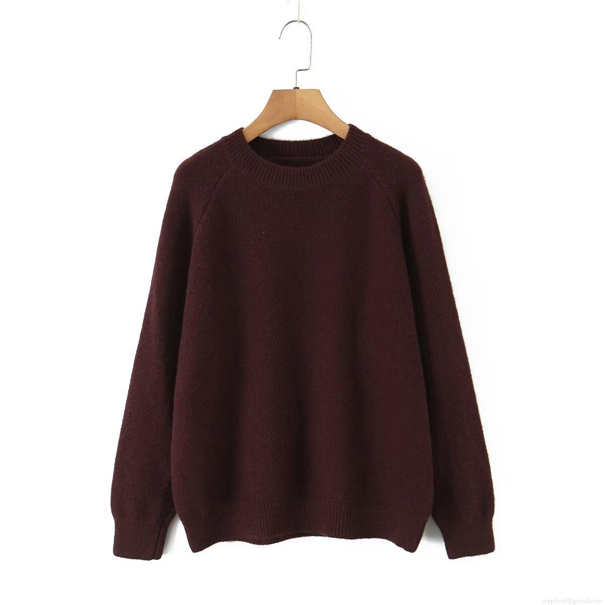Women's Casual Loose Round Neck Knit Sweater Soft Warm Raglan Long Sleeve Pullover Jumper Top Solid Color Clothing For Autumn Winter Daily Wear