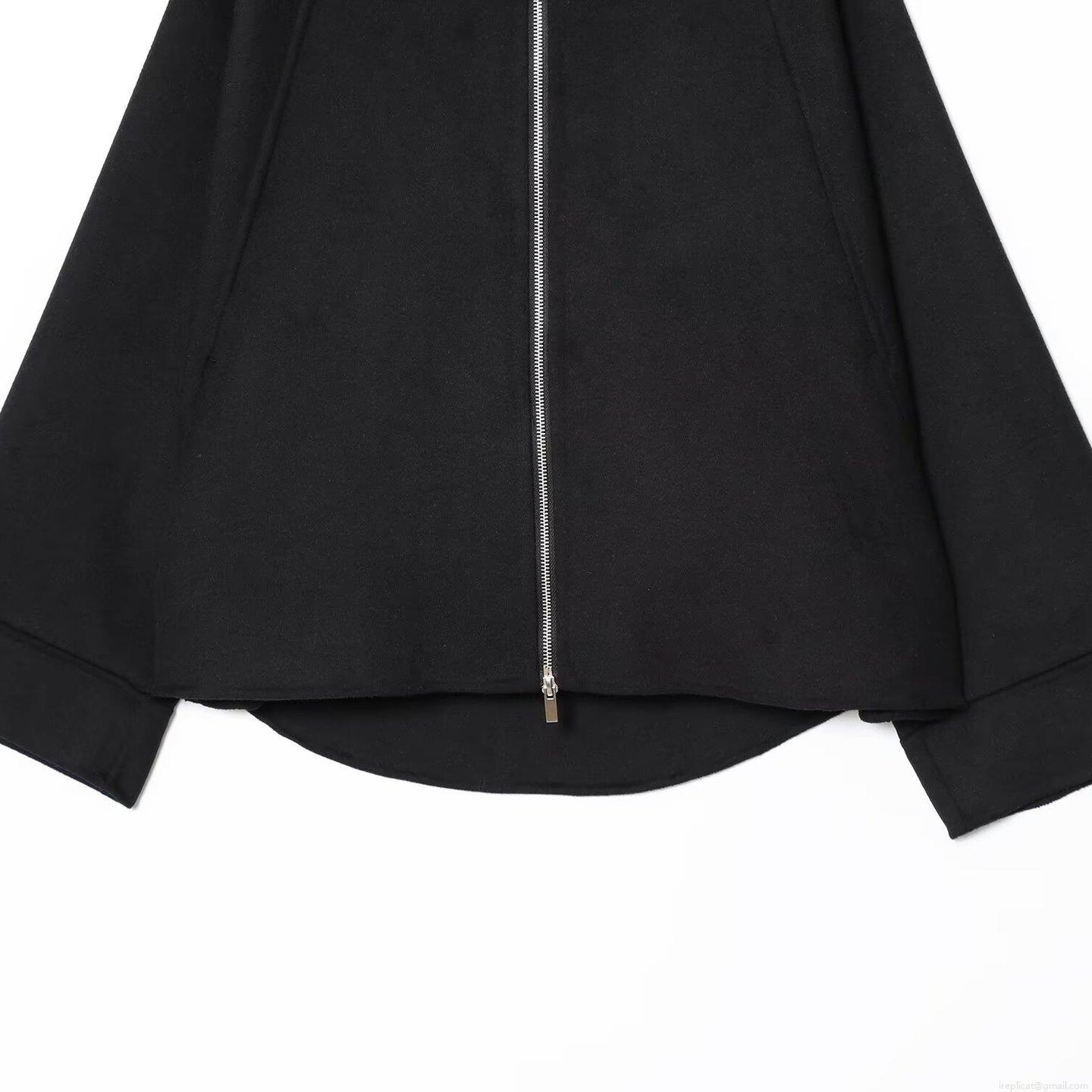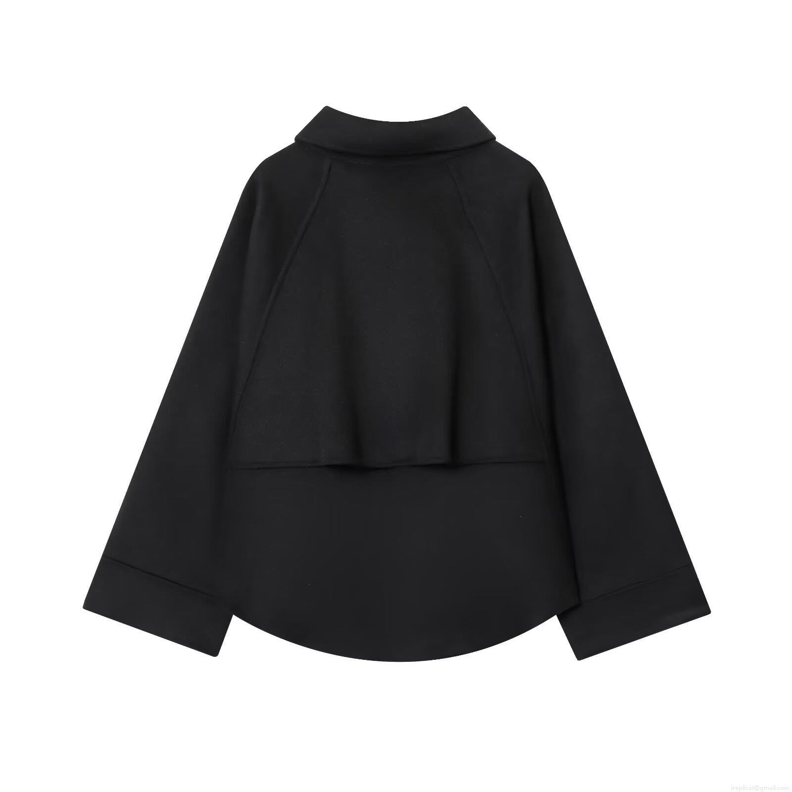Women's Casual Loose Solid Black Zipper Jacket 100% Polyester Turn-down Collar Long Sleeve Fall Outerwear Coat For Women Daily Wear