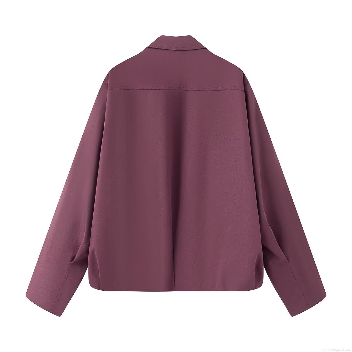 Women's Casual Loose Turn-down Collar Jacket Solid Color Long Sleeve Polyester Spandex Outerwear With Pockets Minimalist Autumn Fashion Coat For Daily Wear