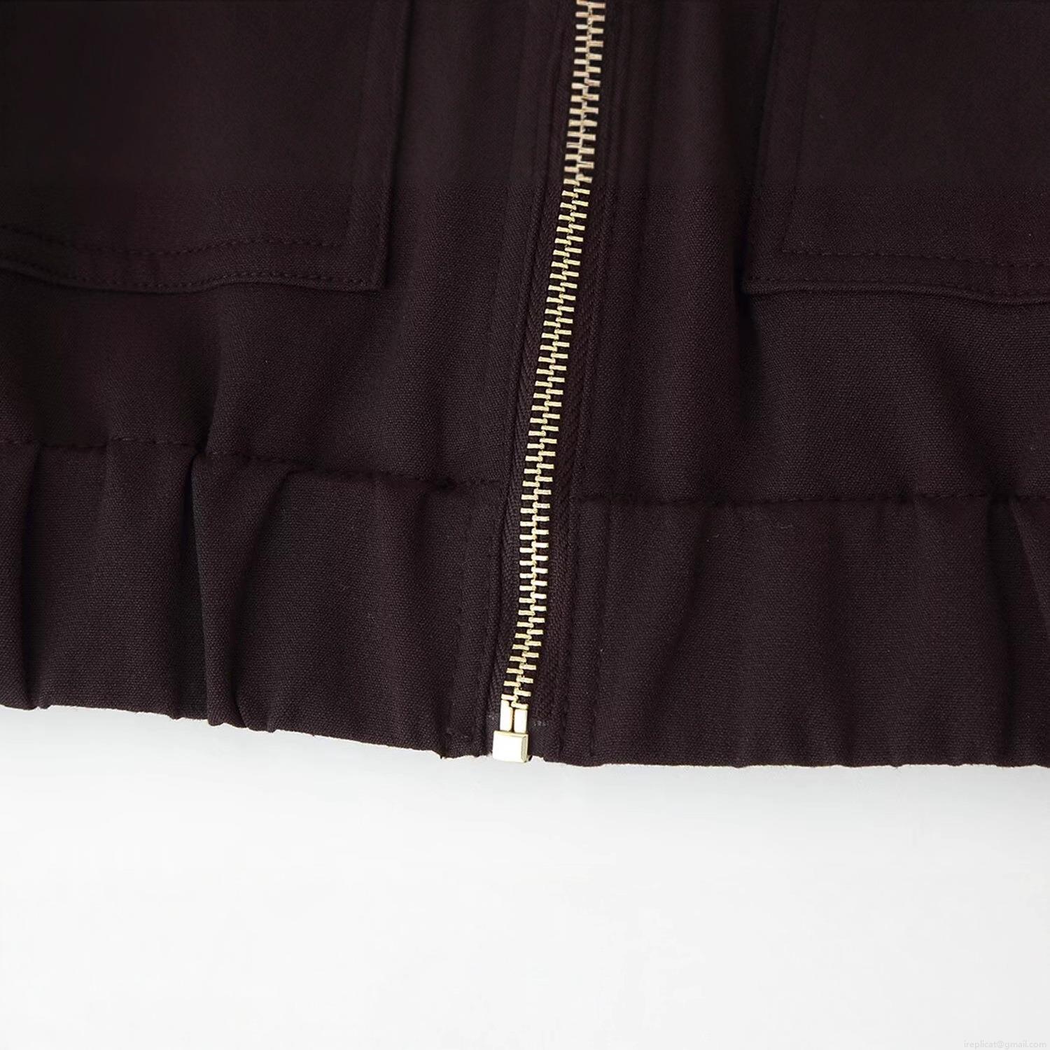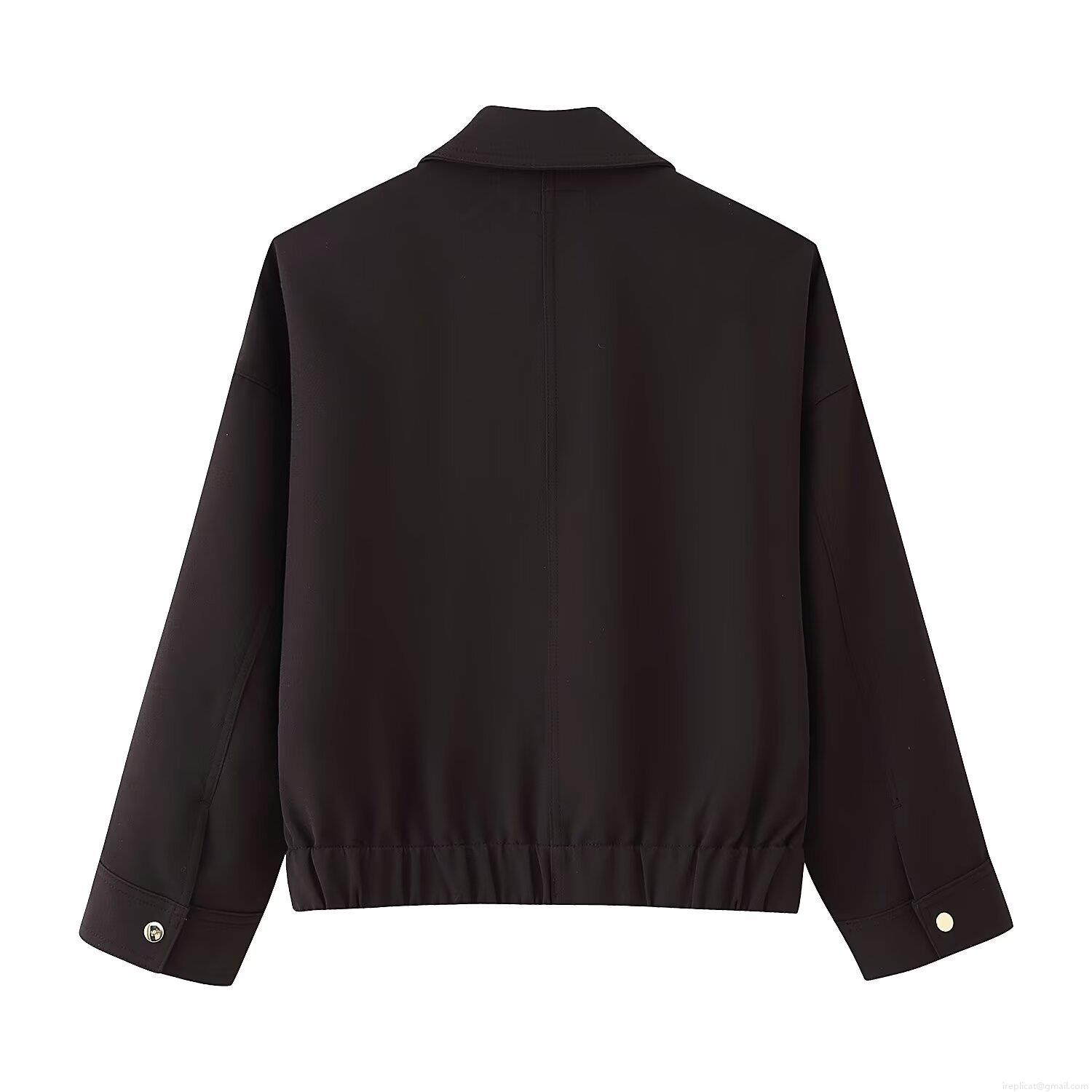 Women's Casual Loose Zip Up Crop Jacket Polyester Turn Down Collar Solid Color Streetwear Outerwear Coat With Pockets For Spring Autumn