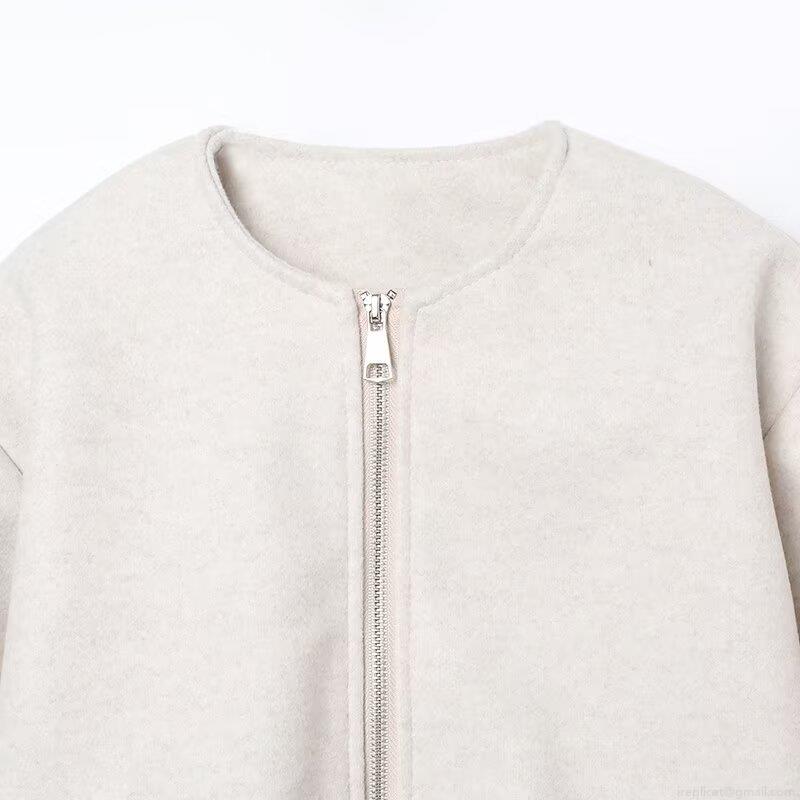 Women's Fashion Woolen Texture Jacket Lapel Zipper Short Coat Solid...