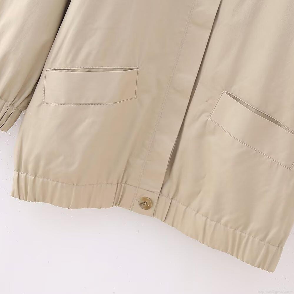 Women's Casual Mid-Length Bomber Jacket 100% Polyester Loose Fit Khaki Pocket Zip Up Outerwear Fashion Lightweight Windproof Coat For Women Spring Autumn Daily Wear