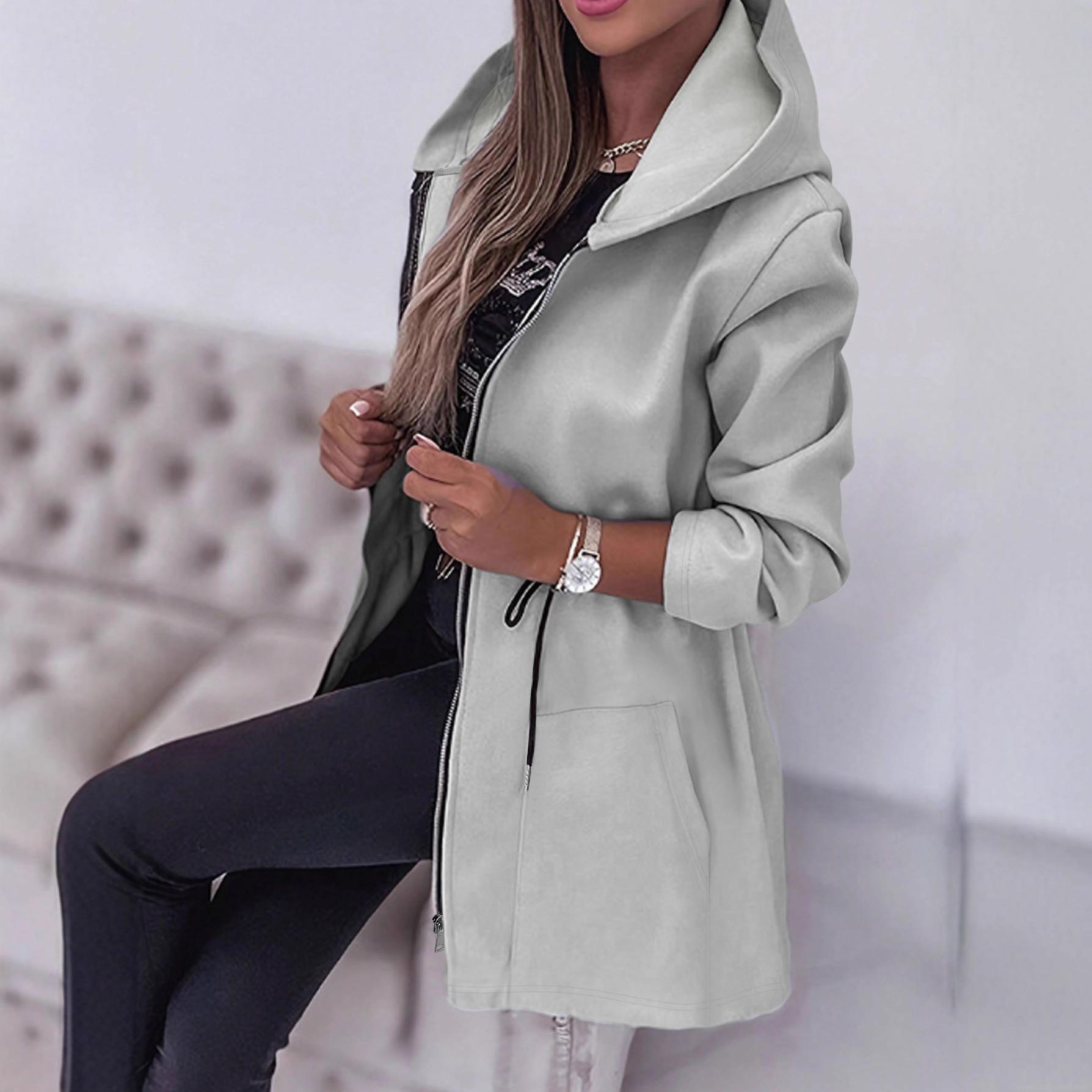 Women's Casual Mid-Length Hooded Jacket Fleece Lined Zip Up Drawstring Waist Coat With Pockets Polyester Spandex Long Sleeve Outerwear For Autumn Winter