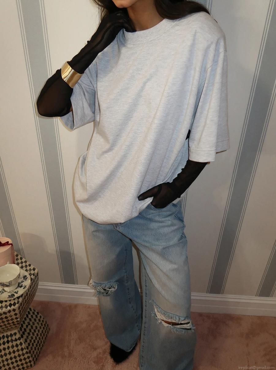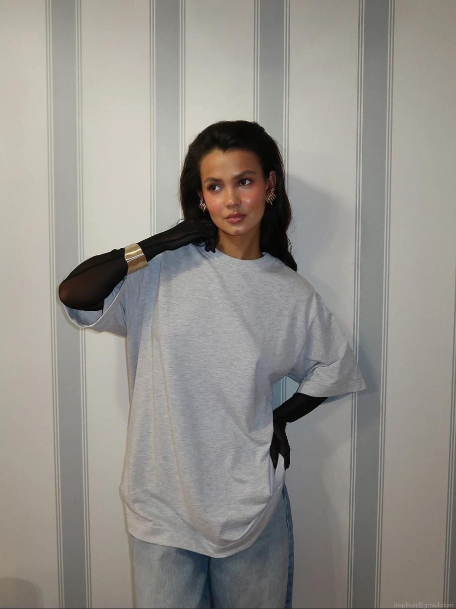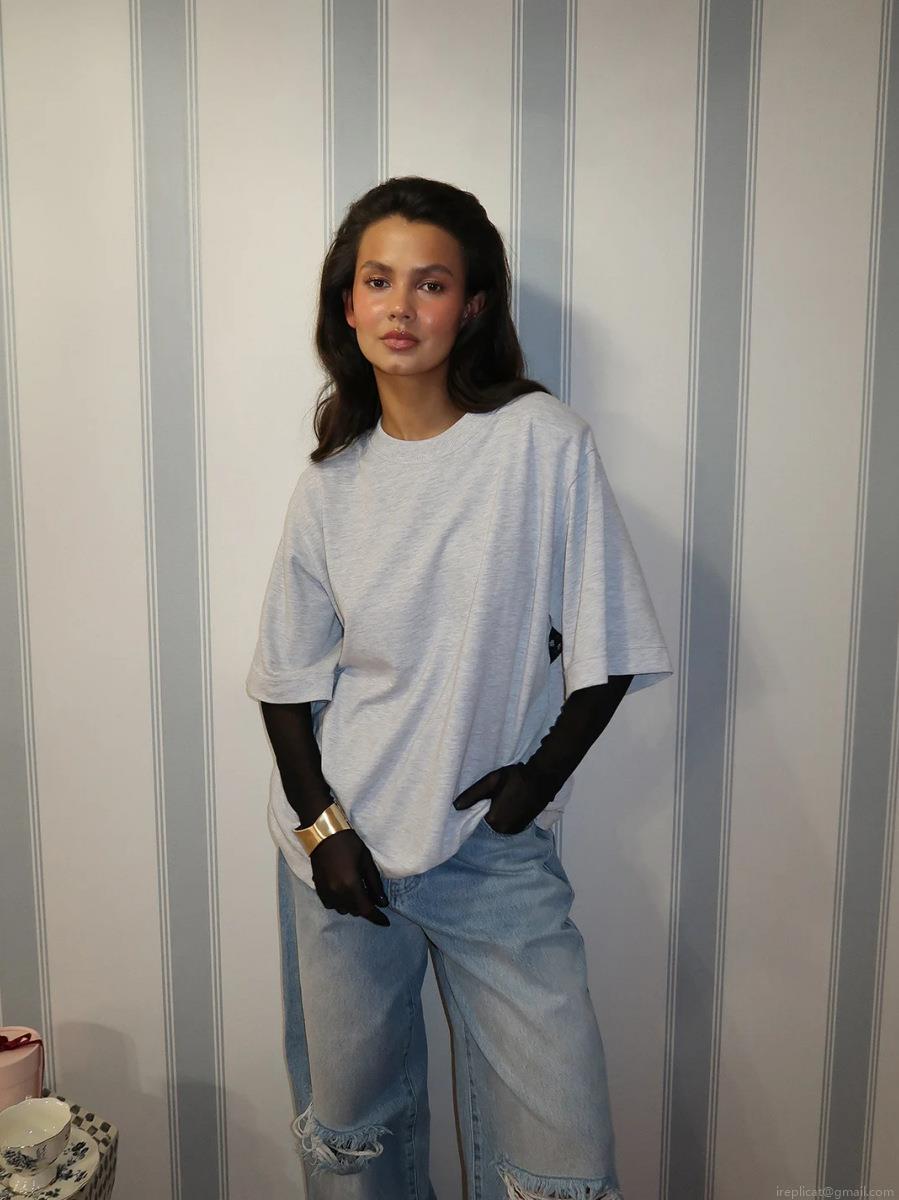 Women's Casual Oversized Cotton T-Shirt with Back Lace Patchwork Detail Crew Neck Drop Shoulder Short Sleeve Streetwear Aesthetic Loose Top