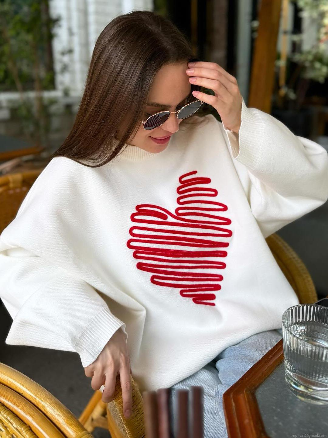 Women's Casual Oversized Heart Embroidered Sweater Round Neck Long Sleeve Knit Pullover Loose Fit Fashion Top for Women Streetwear