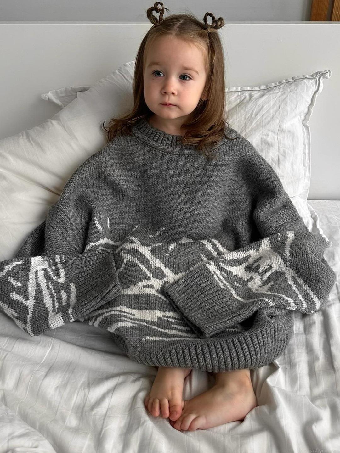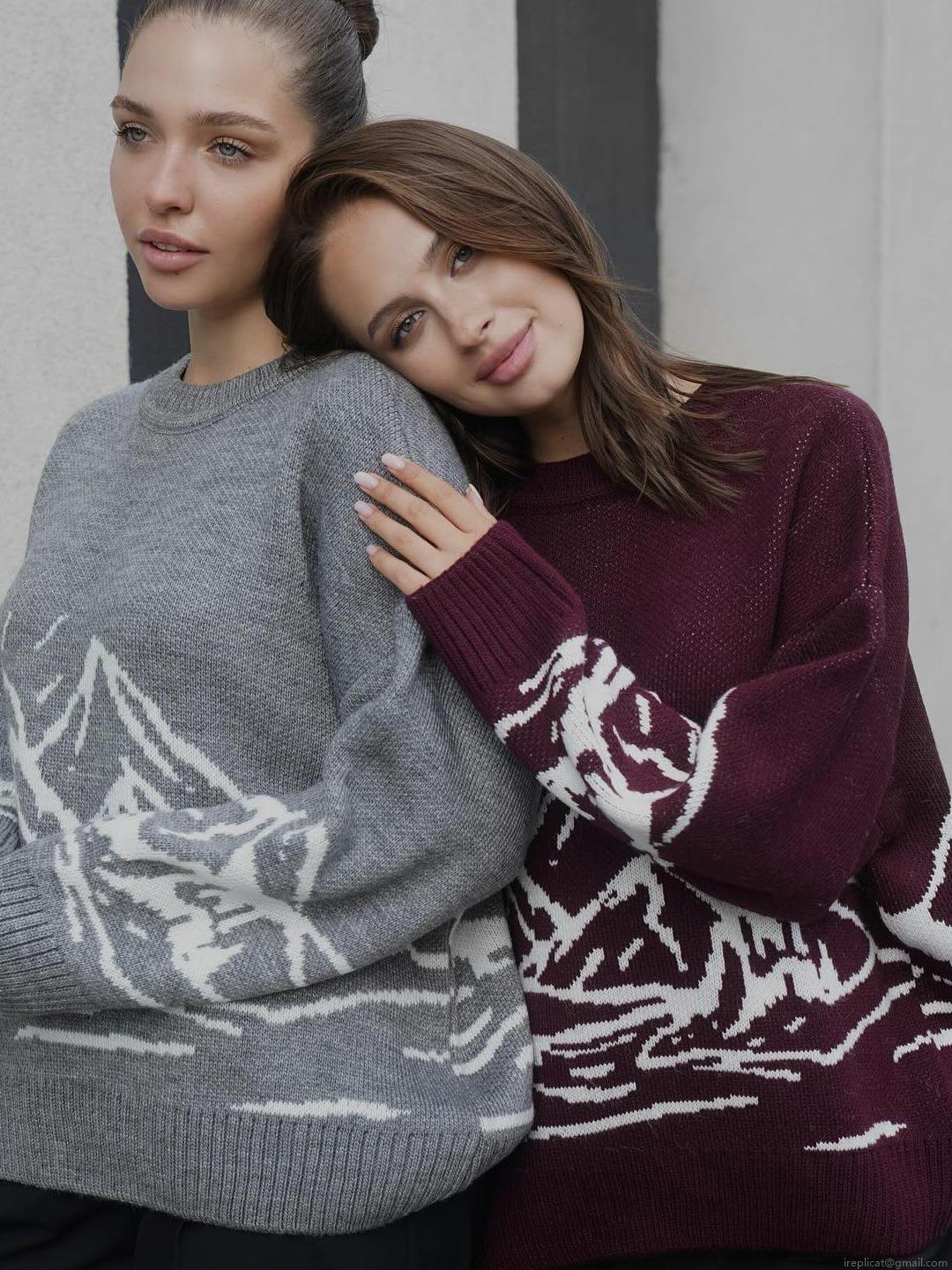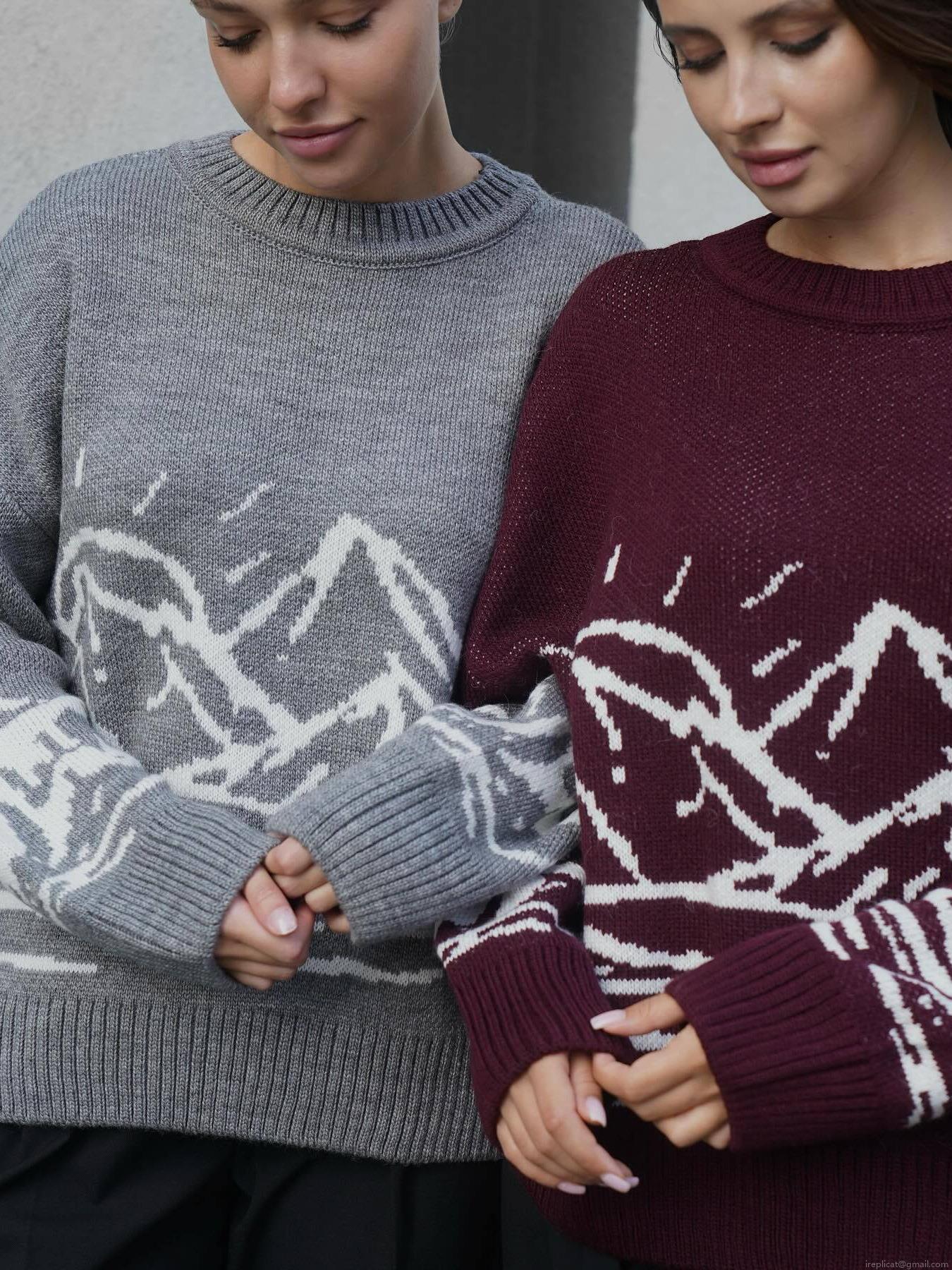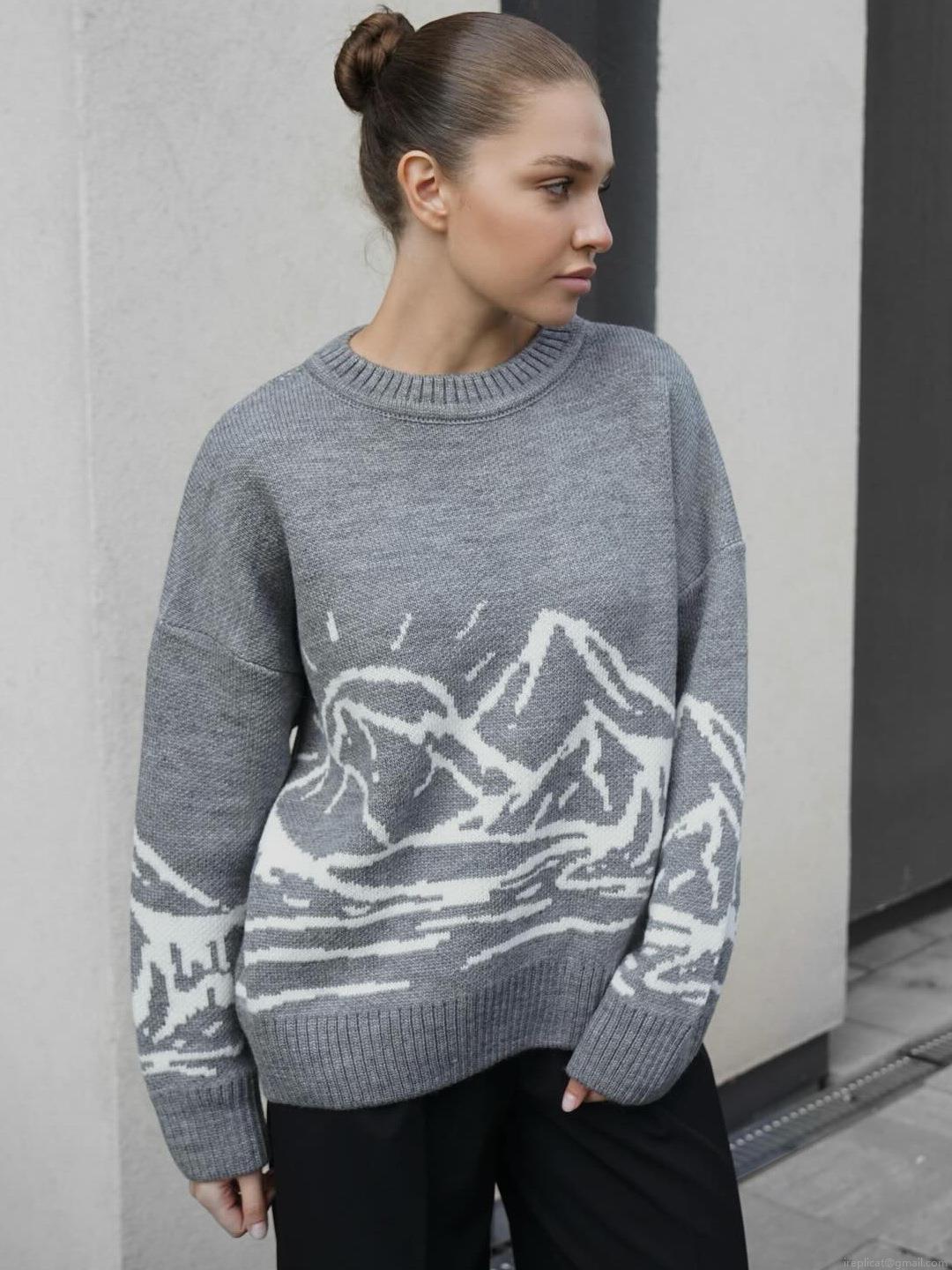 Women's Casual Oversized Knitted Sweater Mountain Jacquard Round Neck Long Sleeve Acrylic Cotton Blend Warm Pullover Top For Autumn Winter