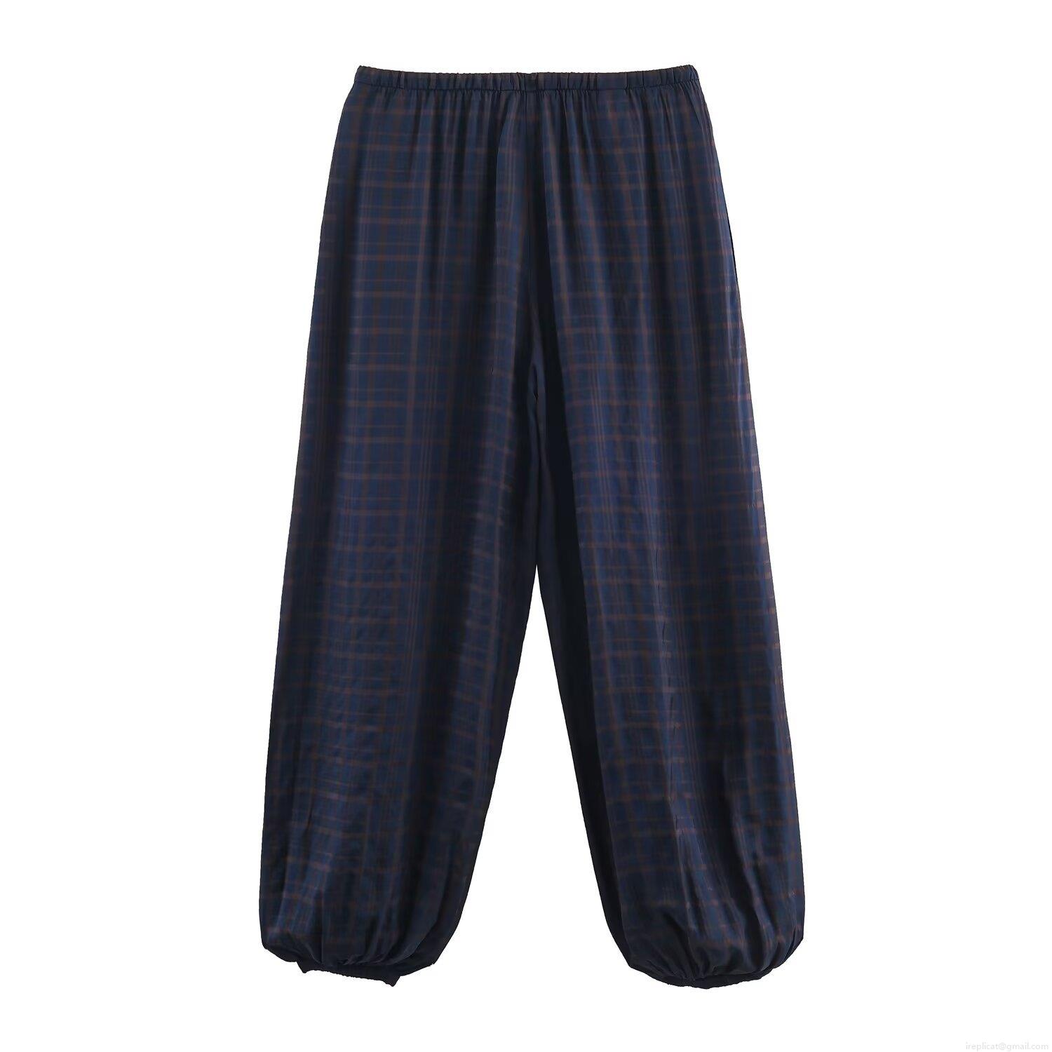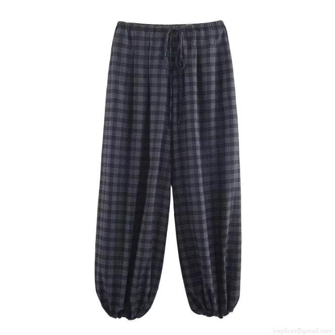 Women's Casual Plaid Joggers High Waist Elastic Drawstring Lantern Pants Loose Tapered Trousers Comfortable Polyester Bottoms For Daily Home Wear