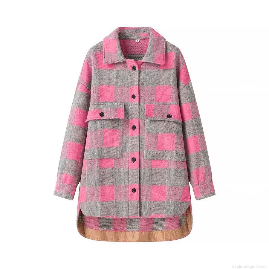 Pocket, Gingham, Single-breasted, Irregular Hem