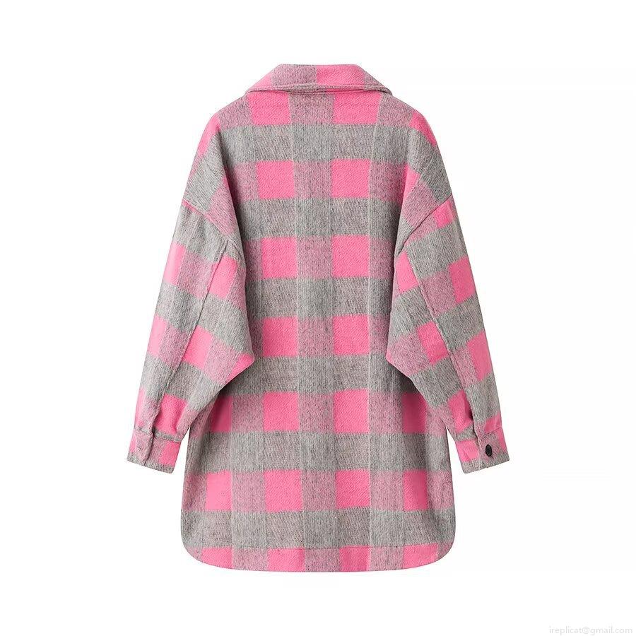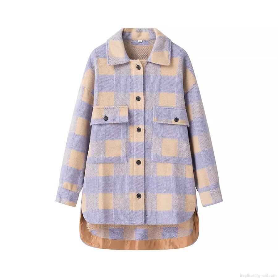 Women's Casual Plaid Shirt Jacket Wool Blend Oversized Button Down Long Sleeve Shacket With Pockets For Fall Winter