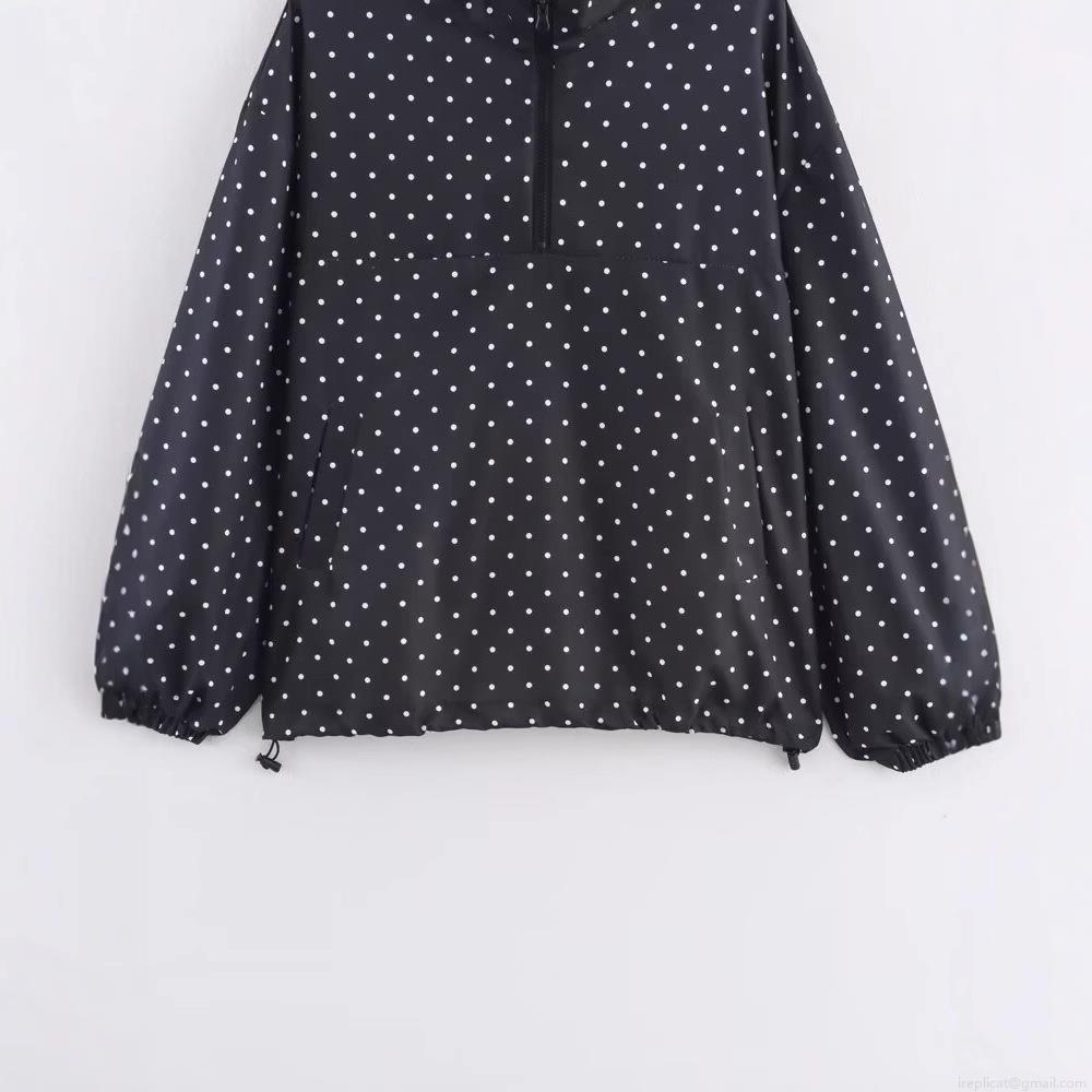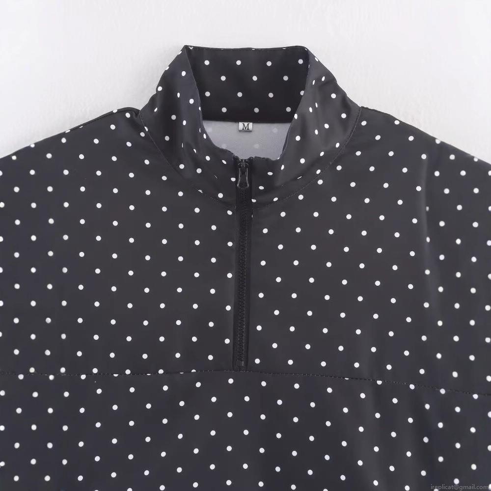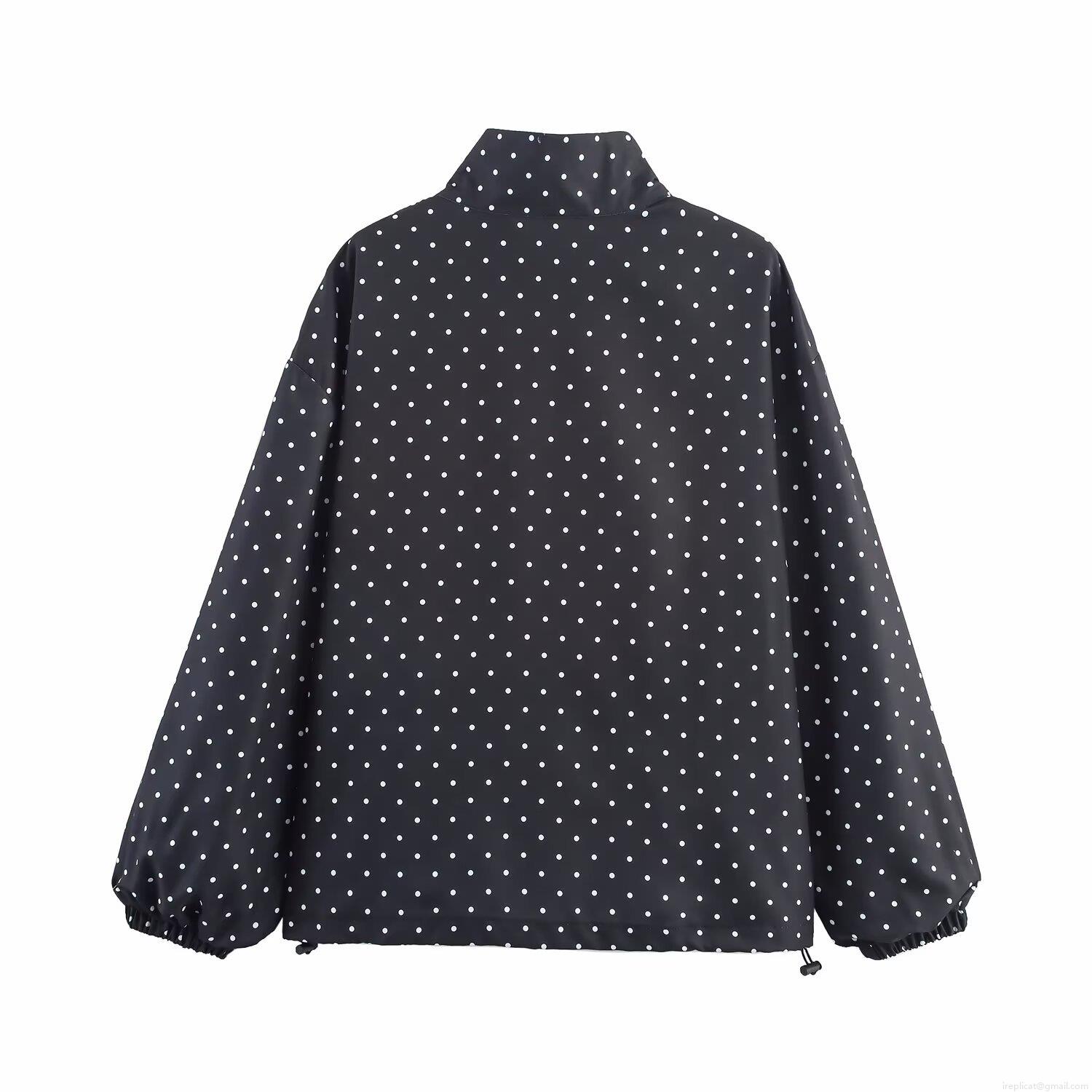 Women's Casual Polka Dot Jacket Lightweight Polyester Quarter Zip Windbreaker Pullover Coat With Drawstring Hem For Women Spring Autumn