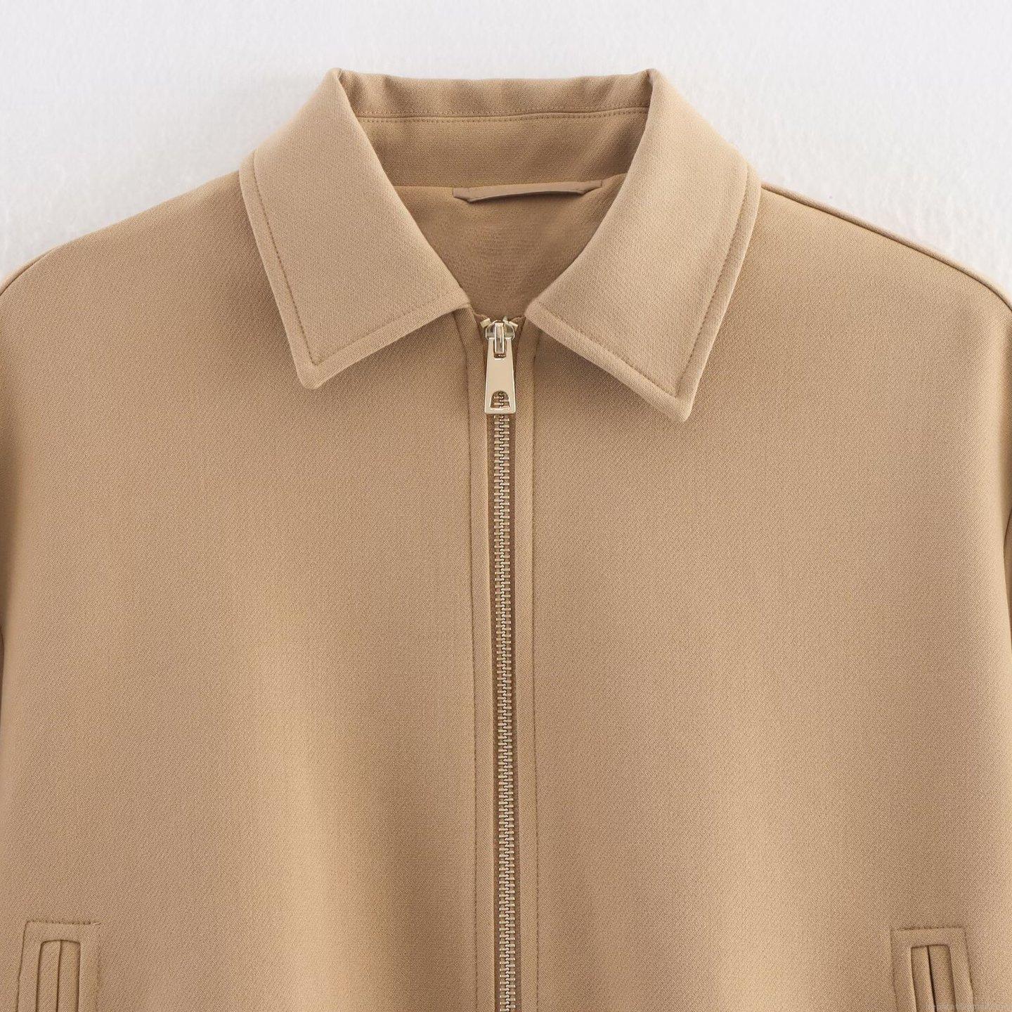 Women's Casual Polyester Blend Zipper Jacket Lapel Long Sleeve Loose Solid Color Outerwear With Pockets For Autumn Daily Wear