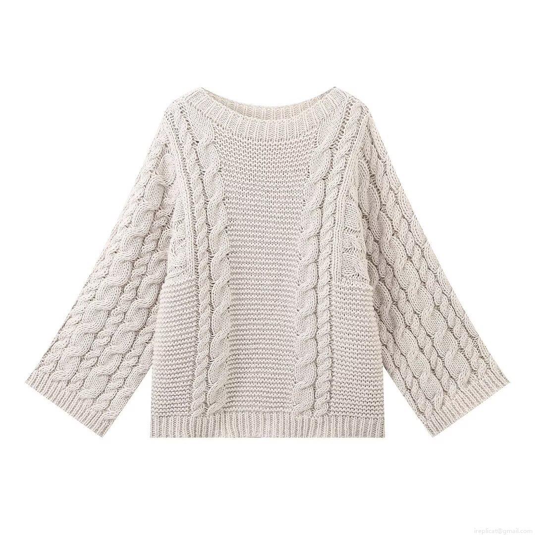 Women's Casual Polyester Cable Knit Sweater Crew Neck Long Sleeve Solid Color Pullover Top Loose Knitted Streetwear Jumper