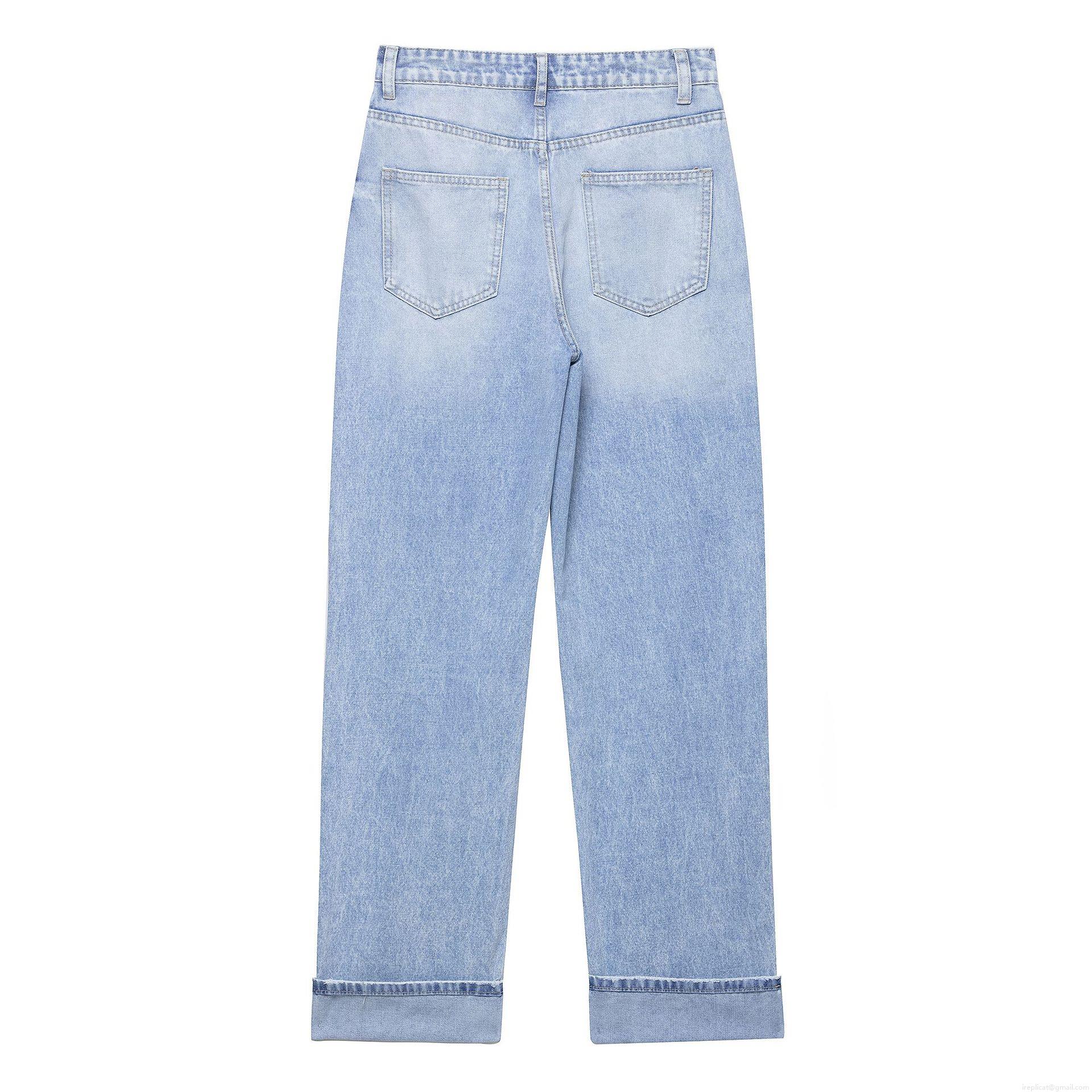 Women's Casual Polyester Denim Straight Leg Jeans High Waist Asymmetric Cross Button Cuffed Hem Loose Fitting Long Pants For Women Streetwear