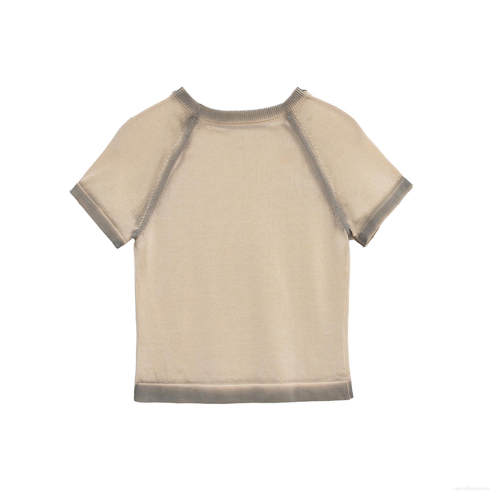Women's Casual Polyester Knit T-Shirt Short Sleeve Round Neck Contrast Trim Gradient Streetwear Top Summer Fashion Tee for Lady