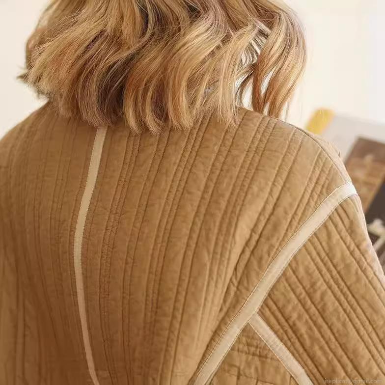 Splice, Color Blocking, Single-breasted, Quilted Texture, Quilting, Contrast Color Edging