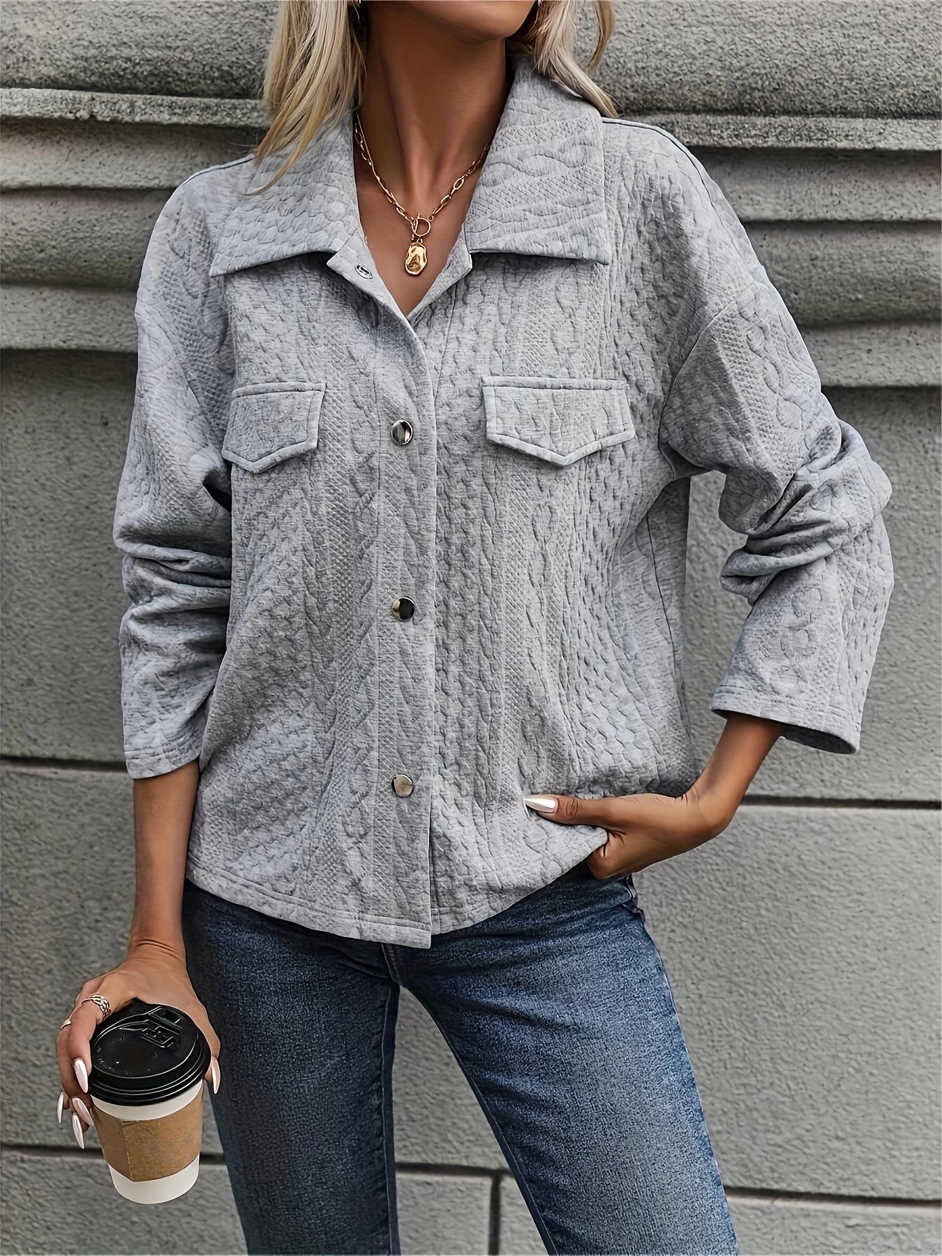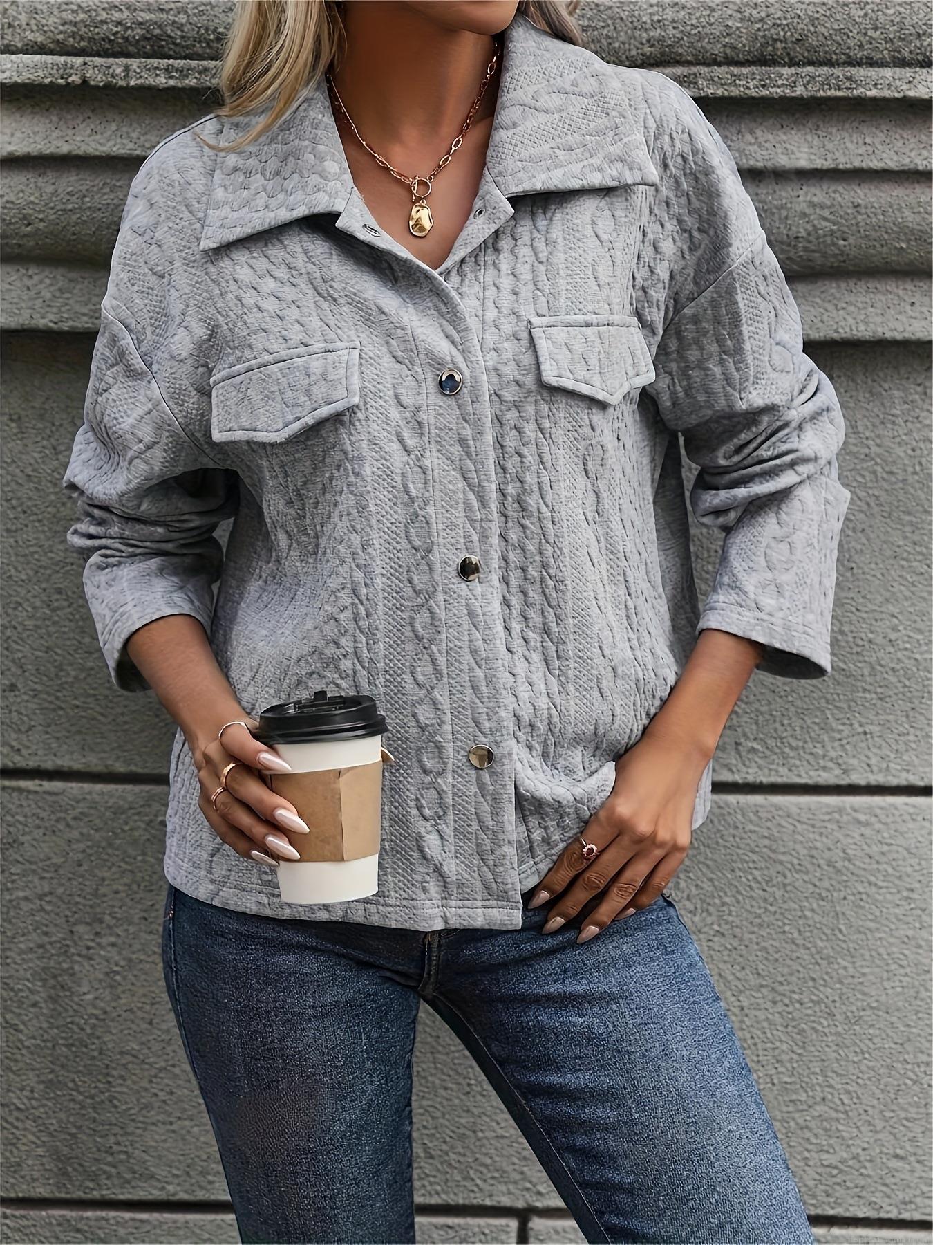 Women's Casual Quilted Jacket Elegant Long Sleeve Button Down Outwear With Pockets Solid Color Lapel Short Coat Lightweight Fall Winter Jacket For Ladies