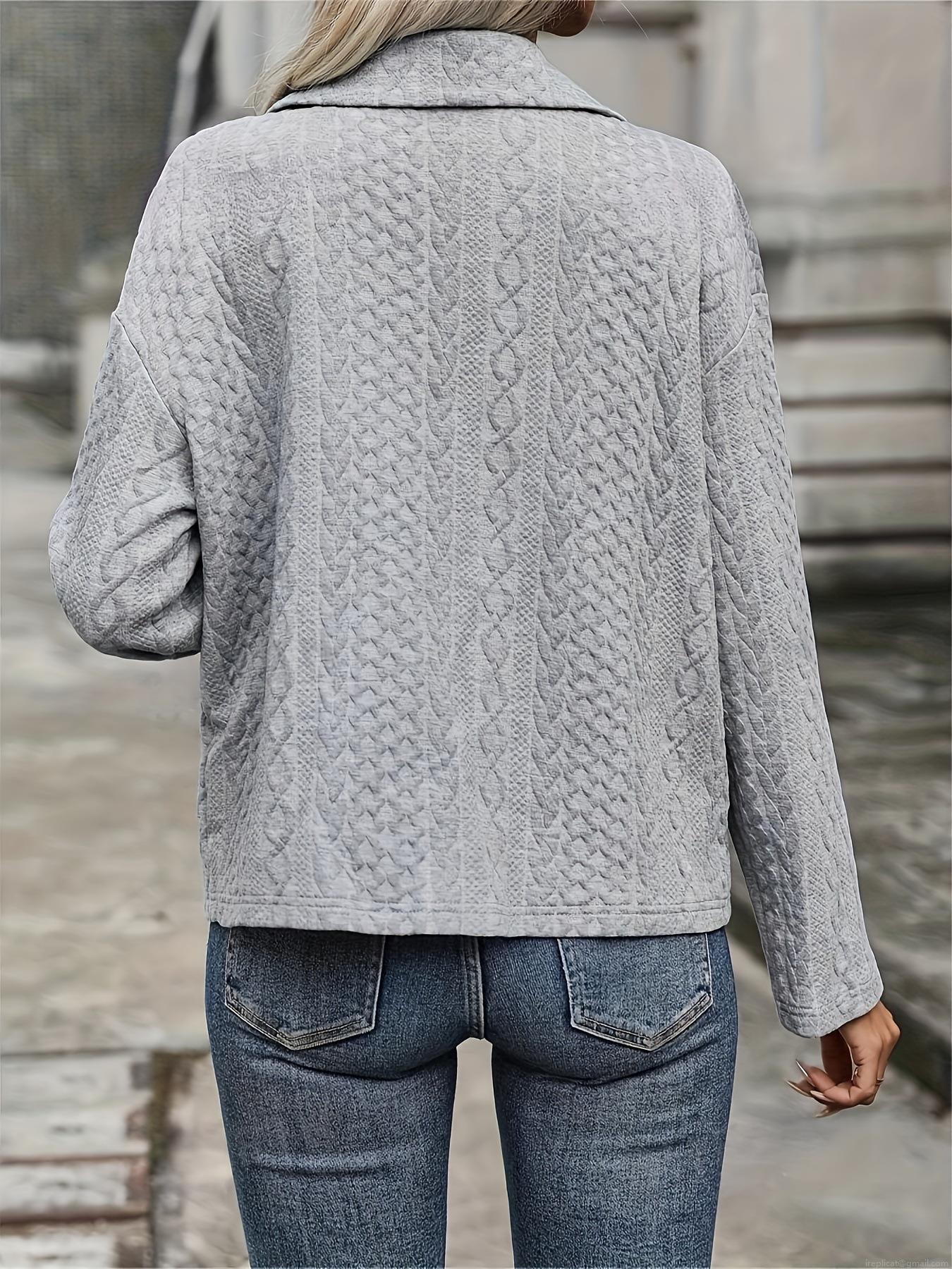 Women's Loose Zip-Up Jacket 100% Polyester Solid Color Turn-Down...