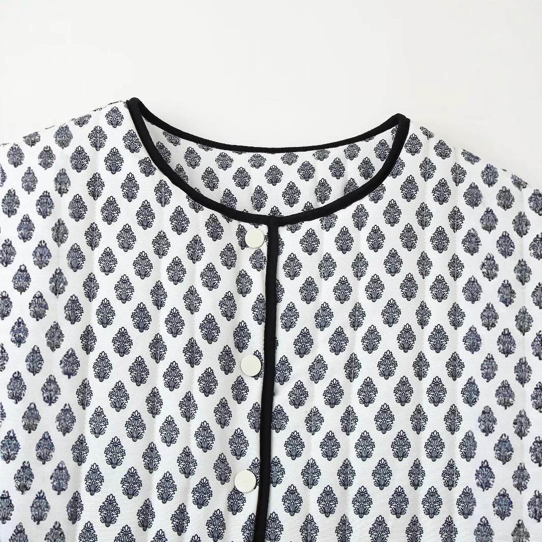 Geometric Patterns, Flowers, Wavy, Single-breasted, Quilting, Black Trim