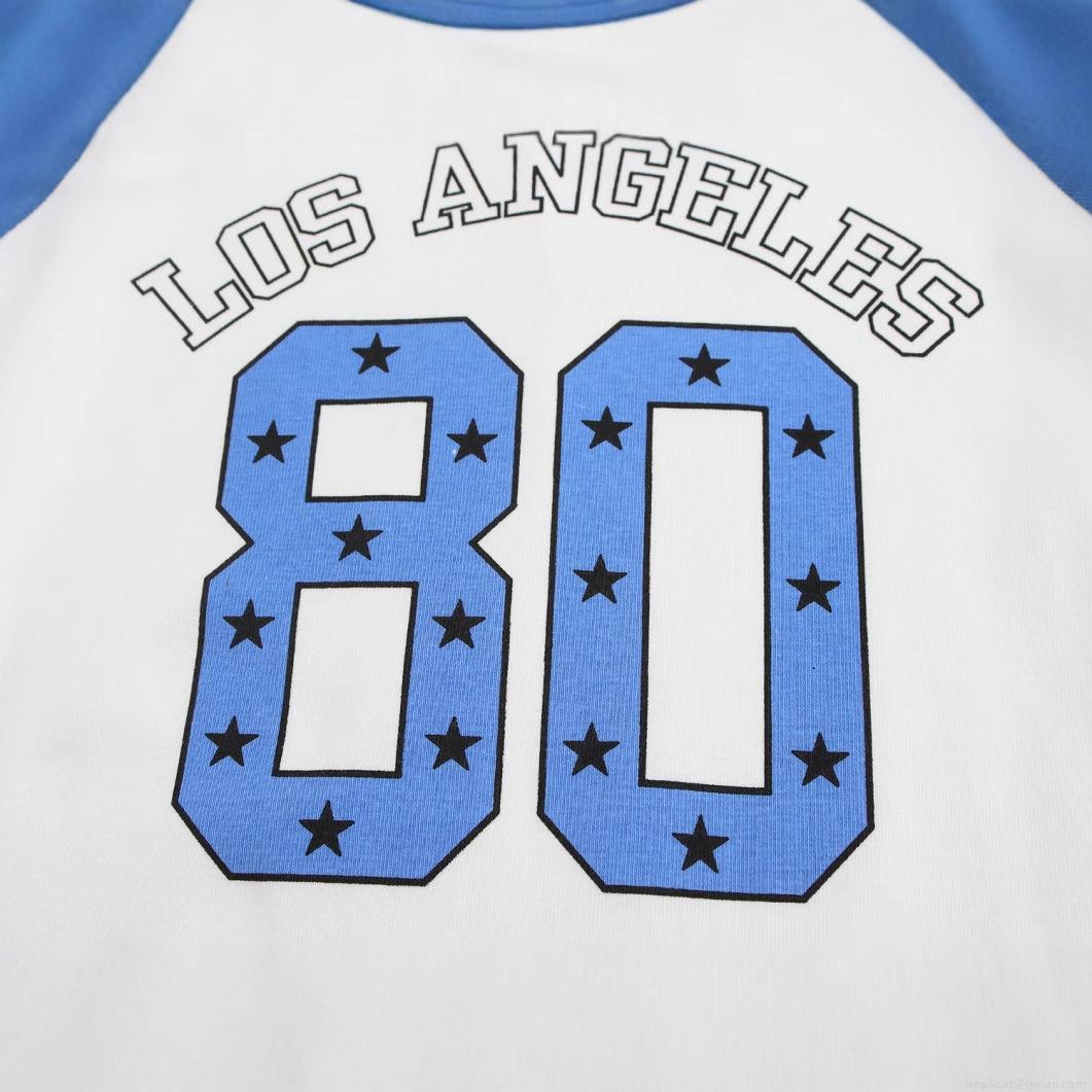 Women's Casual Raglan Long Sleeve T-Shirt Cotton Blend High Stretch Color Block Los Angeles 80 Letter Print Crew Neck Sporty Streetwear Top