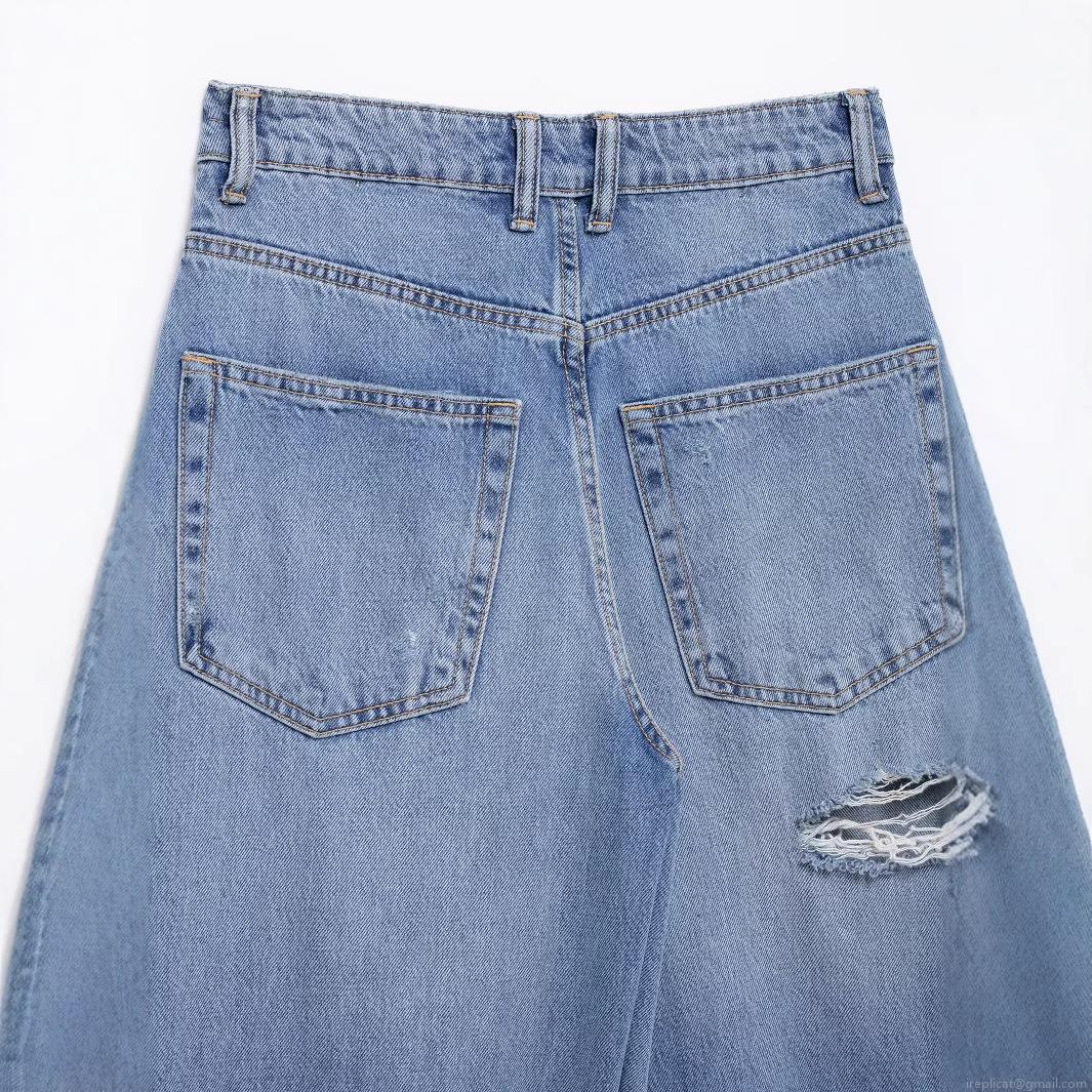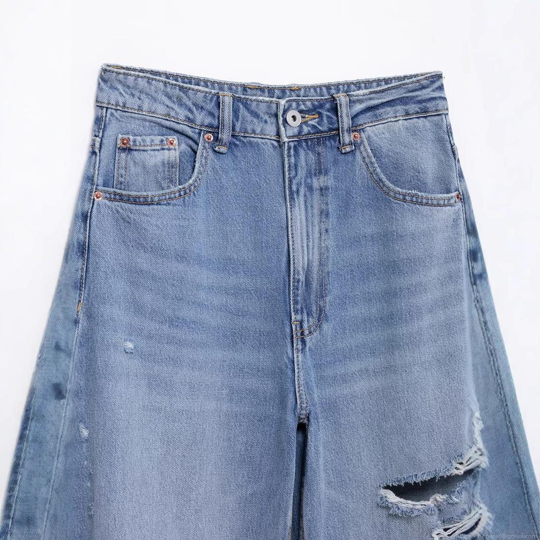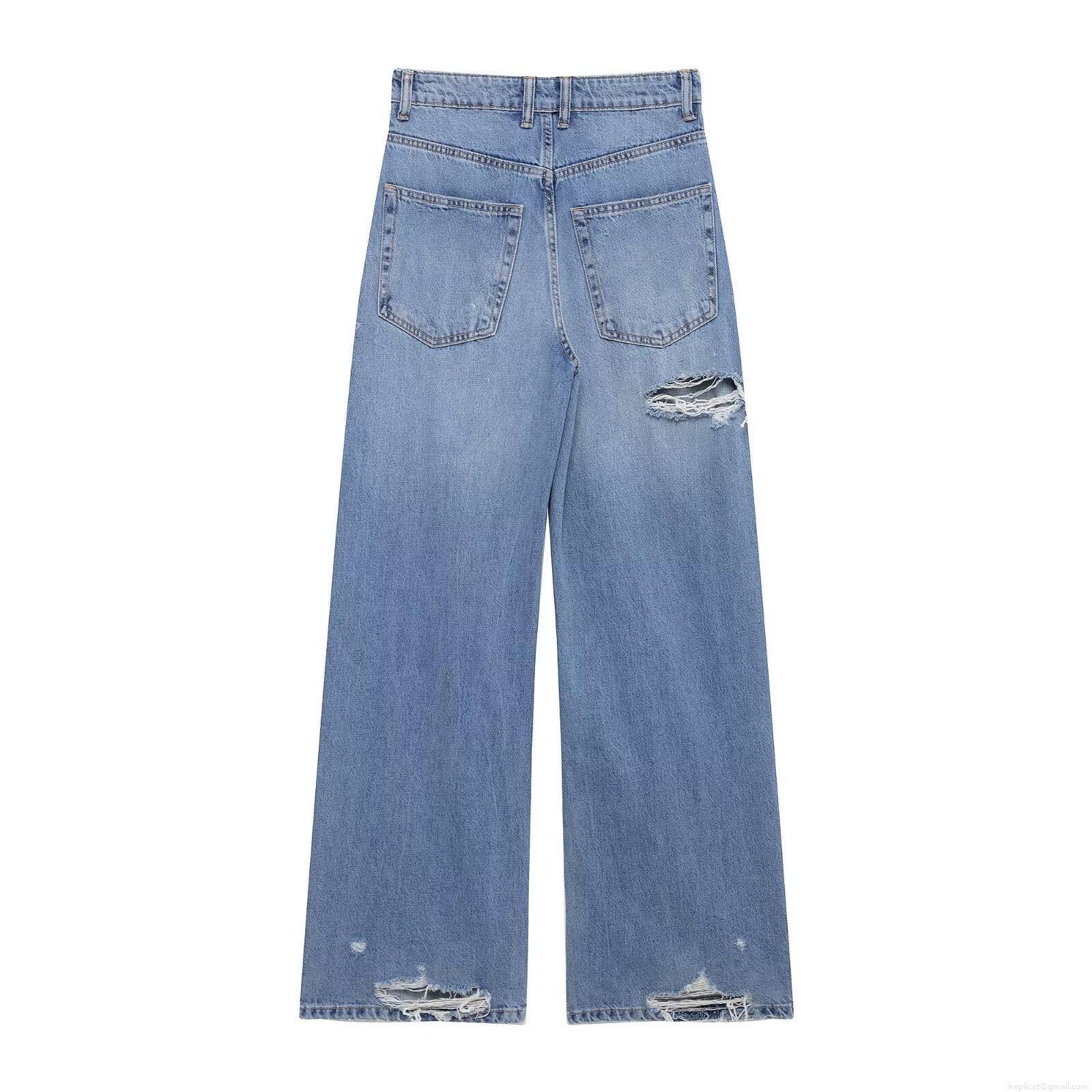 Women's Casual Ripped Distressed Denim Jeans Fashion Loose High Waisted Straight Leg Pants Light Blue Streetwear Denim Trousers