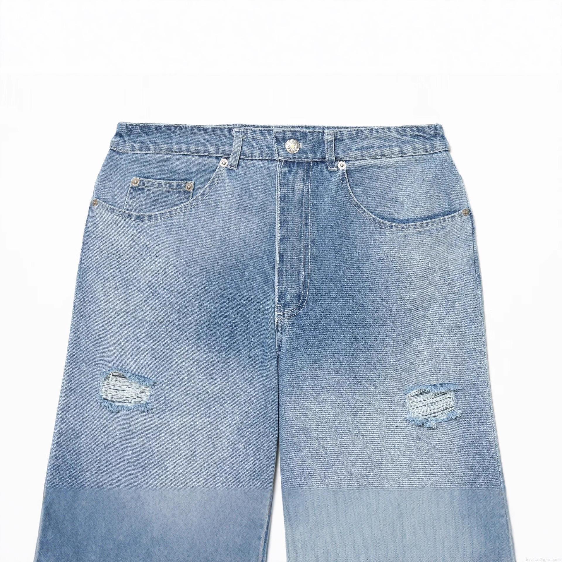 Women's Ripped Wide Leg Jeans Washed Blue Distressed Denim Cropped...