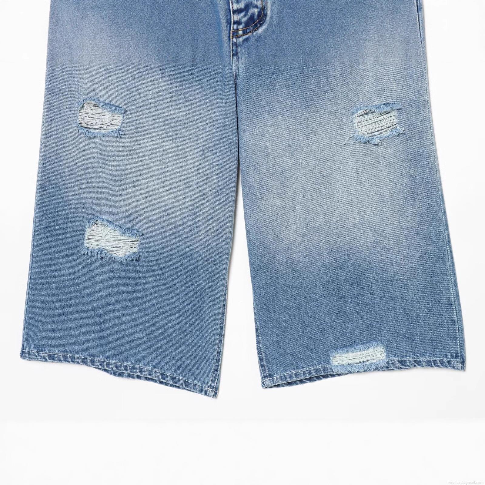 Women's Casual Ripped Wide Leg Denim Jeans Distressed Washed High Waist Cropped Capri Pants Loose Fit Streetwear Polyester Blend Trousers